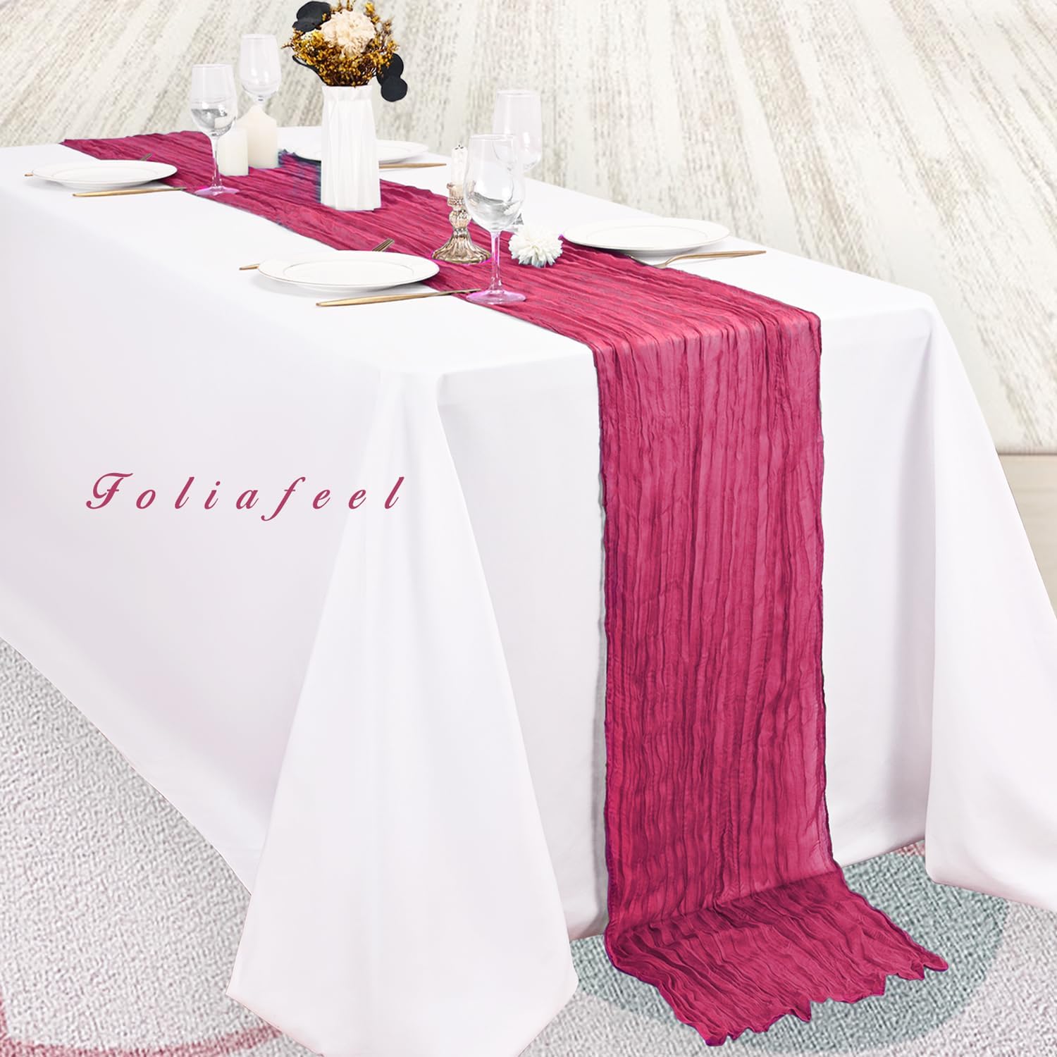 Hot Pink 12 Pack Cheesecloth Table Runner 10FT Boho Fabric Rustic Cheese Cloth Table Runner for Wedding 20 x 120 Inch Long Bridal Shower Baby Shower Gauze Sheer Birthday Party Table Decorations