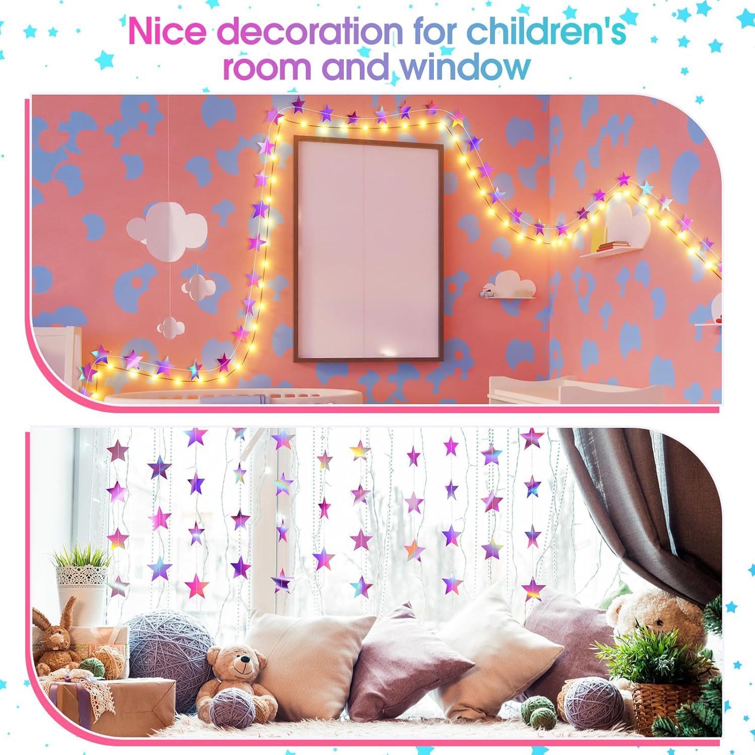Patelai Glitter Star Garland Banner Decor 130 Feet Star Hanging Bunting Banner Twinkle Backdrop for Homecoming Classroom Wedding Birthday Halloween Christmas Party Supplies(Iridescent Purple)