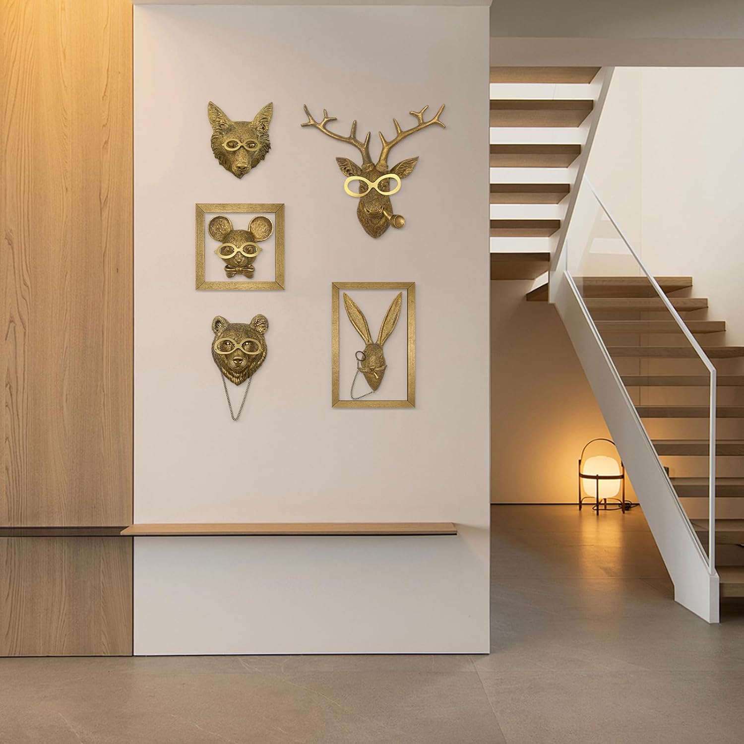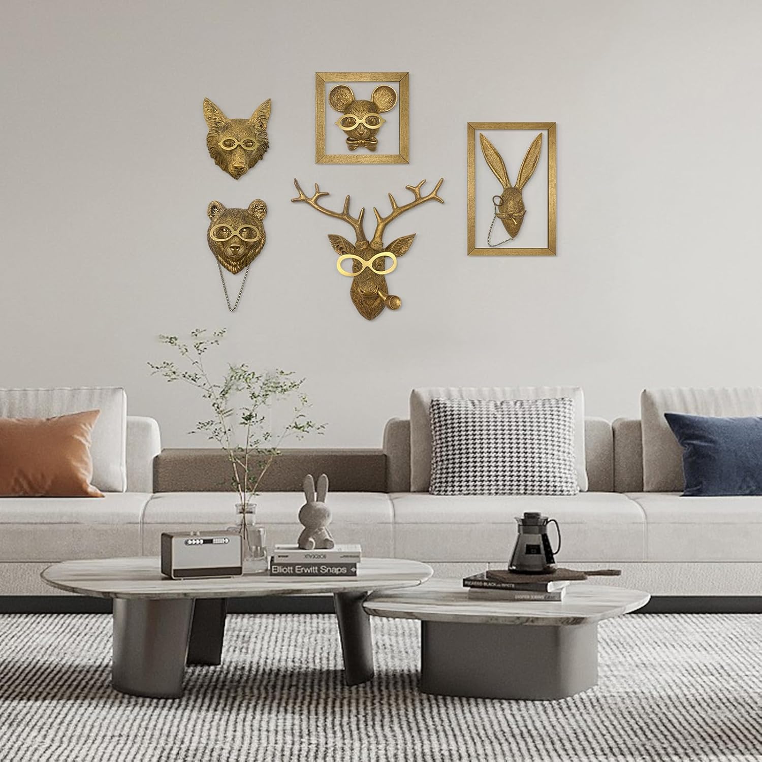Animal Heads Wall Decor, animal wall art,Resin Animal Head Wall Hanging Decoration for Living Room Bedroom Office Kitchen Gift,5pcs
