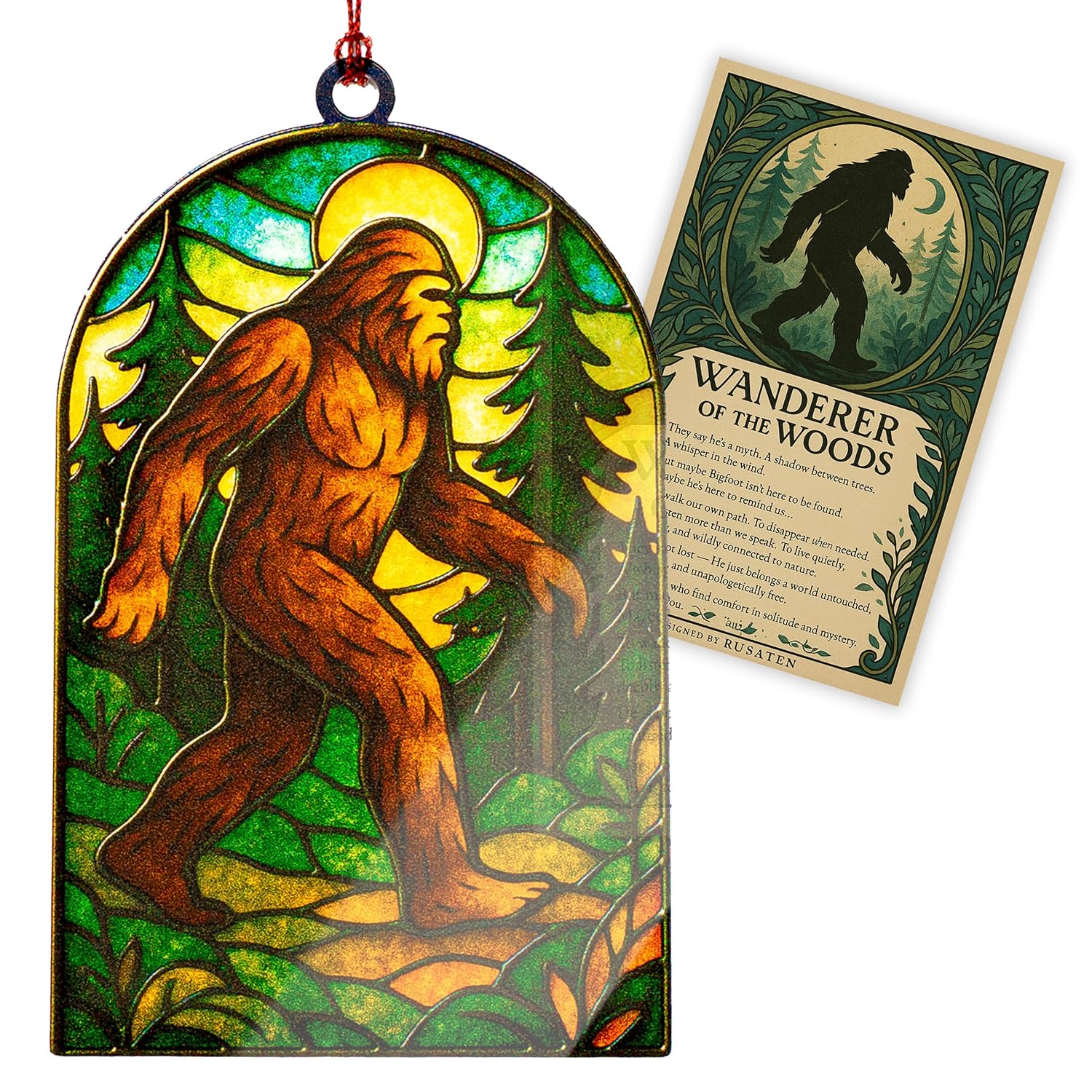 Bigfoot Gifts, Big Foot Sasquatch Gifts, Sasquatch Gifts, Bigfoot Ornament, Big Foot Card, Christmas Ornament 2025, Suncatcher Effect Stained Glass Window Hanging, Car Hanging Accessories