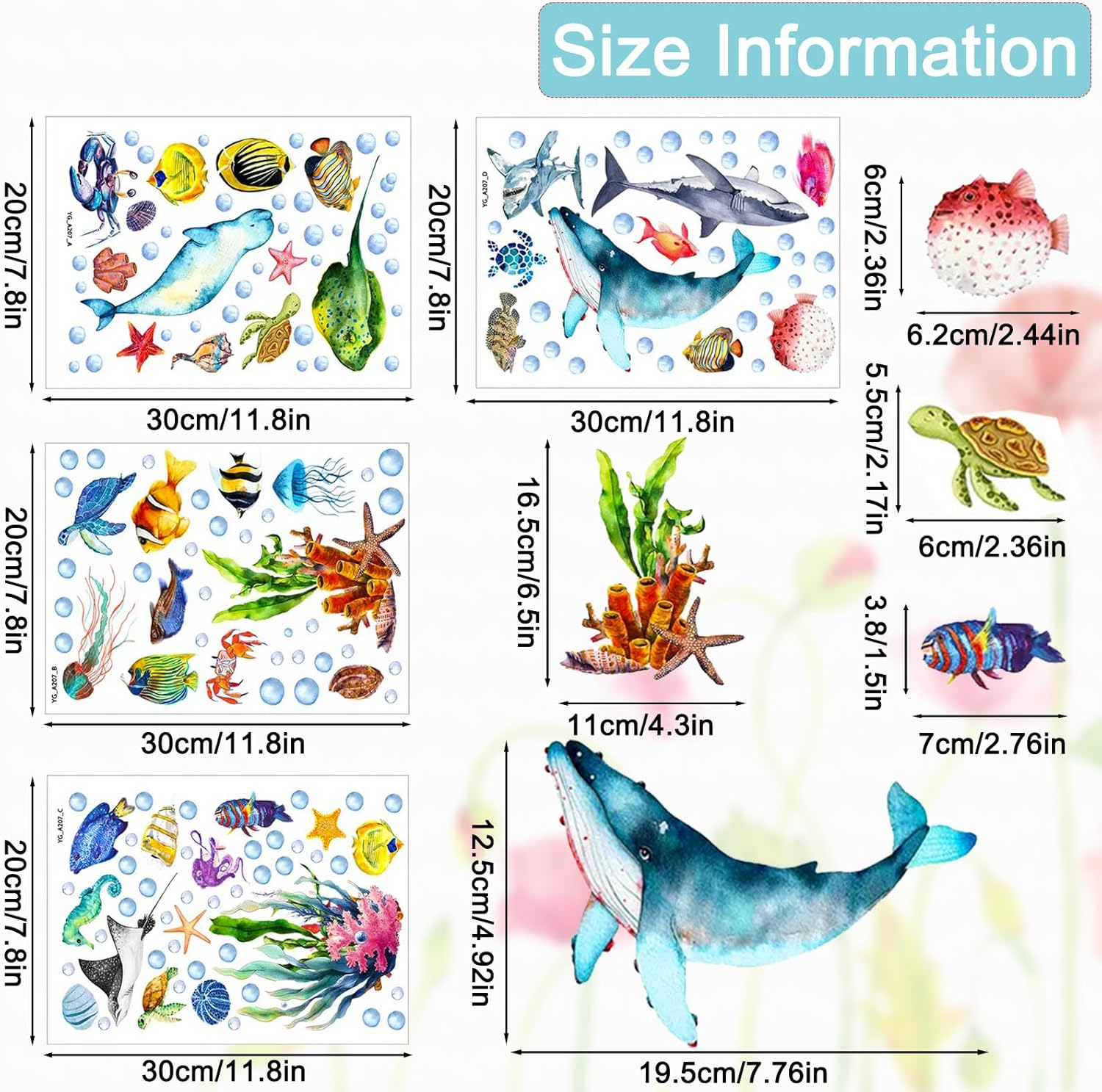 - Safe & Reusable Wall Stickers: The ocean wall decals are made of durable, waterproof PVC with strong self-adhesive backing. Repositionable without losing stickiness-peel & re-stick for mess-free decorating! Perfect for bedrooms, playrooms, classroom, nursery,day-cares, or even dorm decor!