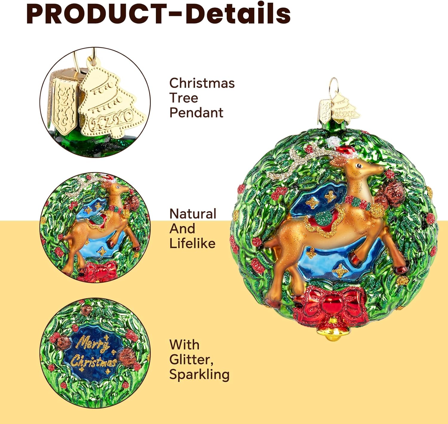 Reindeer Christmas Tree Ornaments,Blown Glass Christmas Ornaments, Wreath Collection Hanging Ornaments,Glass Home Decorations for Animal Lovers Holiday Party Daily Gifts