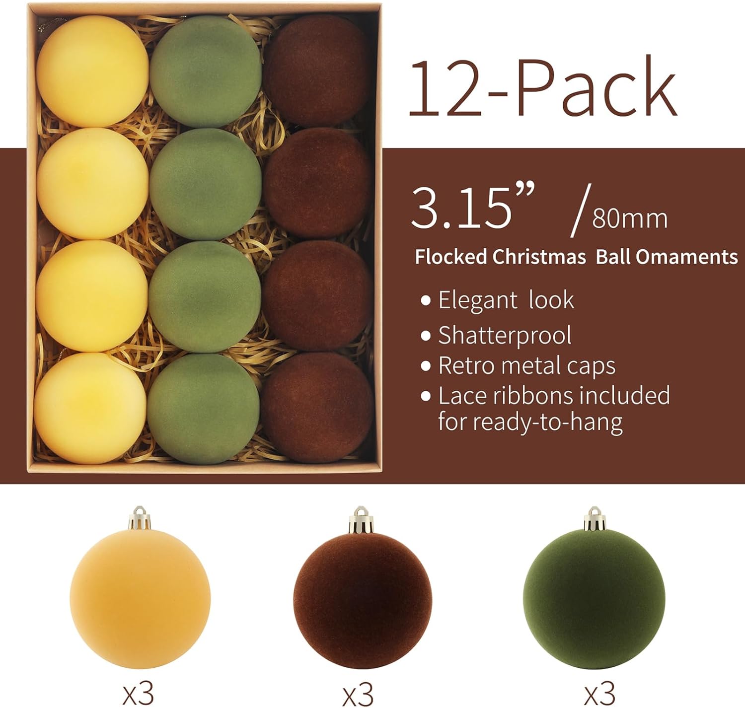 - Eco-Friendly Kraft Gift Box for Storage & Display: Comes packaged in a sturdy kraft paper box, ideal for organized storage, safe transportation, or ready-to-give holiday gifts. The natural look of the box complements the rustic charm of the ornaments.