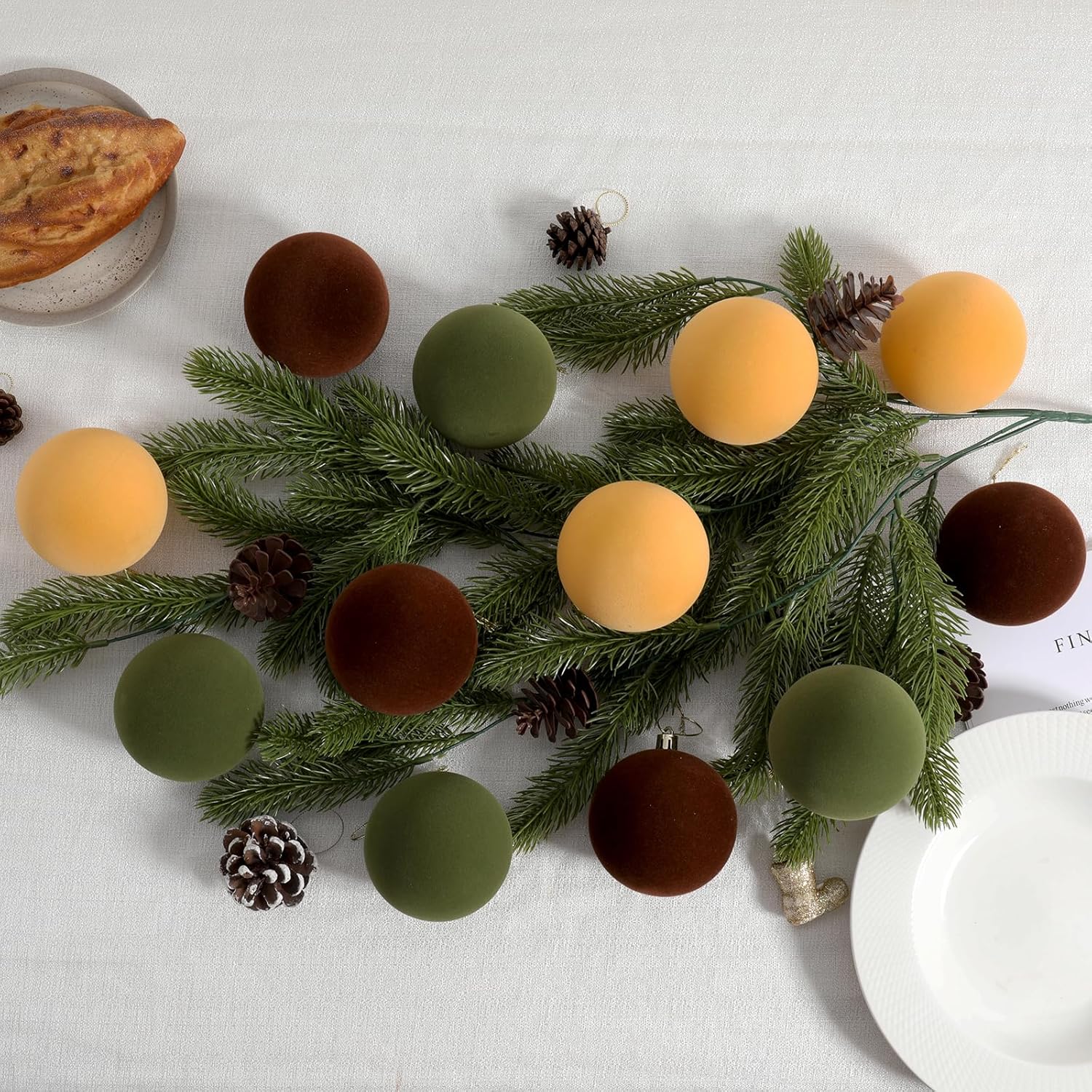 - Artistic Hand-Painted Accents – Balanced Elegance: Select ornaments in the set feature delicate hand-painted designs, adding an artisanal touch. The contrast between painted and plain velvet balls creates a refined, layered look on your Christmas tree.