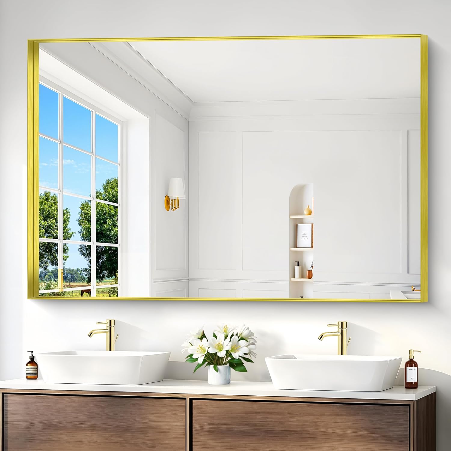 Gold Bathroom Mirror, 60x40 Inch Rectangular Framed Mirror, Large Wall Mounted Bathroom Vanity Mirror Over Sink for Bedroom,Restroom, Living Room, Hangs Vertically or Horizontally