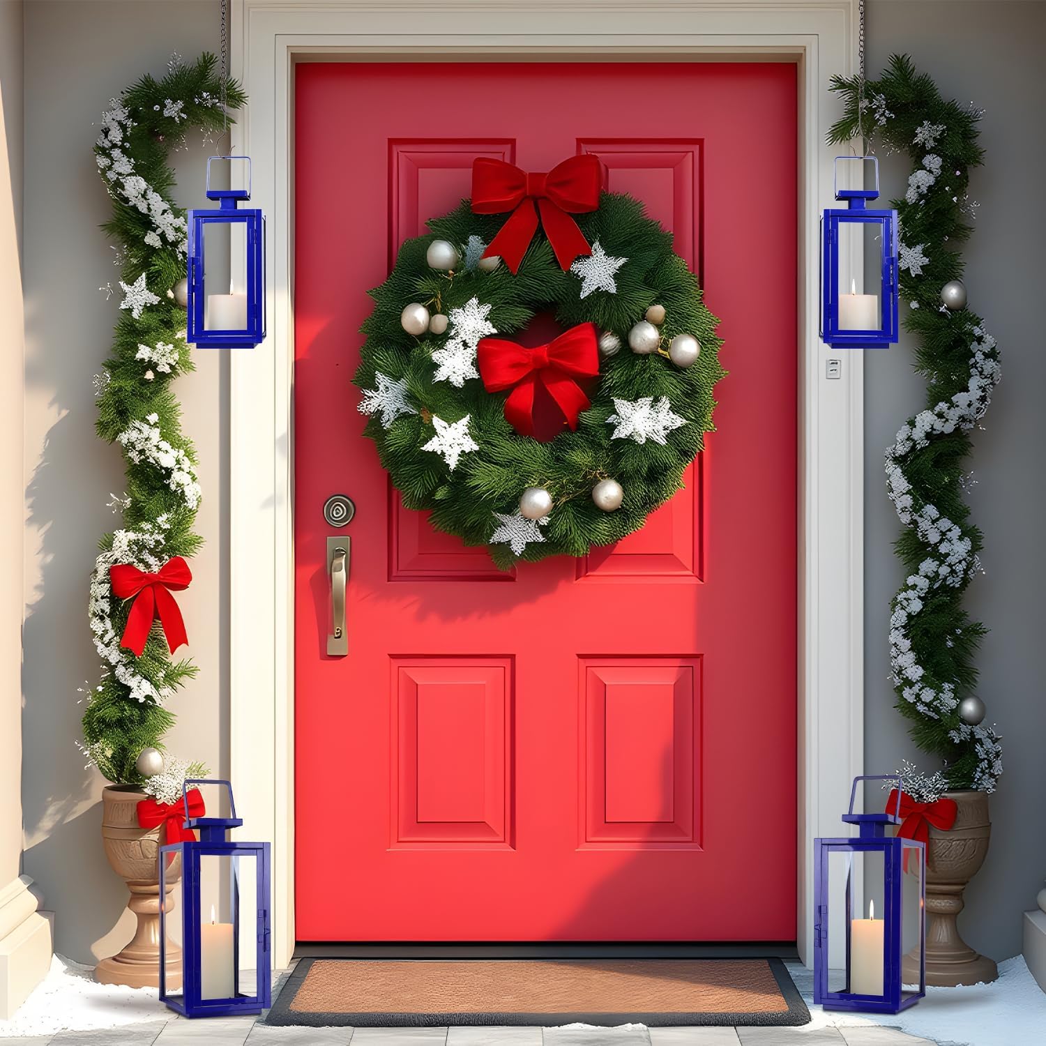 - Minimalist and elegant modern lantern decoration—this tempered glass lantern with a blue frame brings lasting elegance to your space. The ultra-clear glass transmits the flickering candlelight, not only enhancing the ambient lighting effect but also creating a warm and peaceful atmosphere, as if it were a sanctuary for the soul. Decorating your fireplace, table, shelf, or wall with this elegant lantern is an excellent idea!