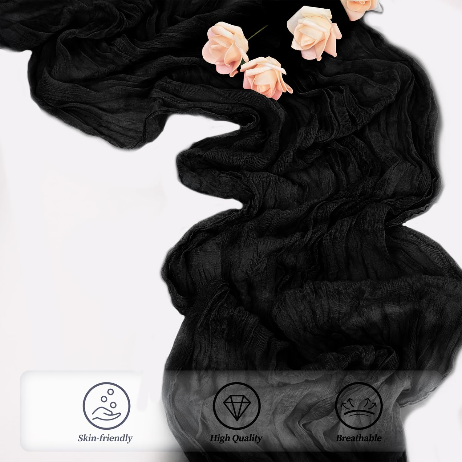 10FT 20 Pack Black Cheesecloth Table Runner 20 x 120 Inch Long Boho Fabric Rustic Cheese Cloth Table Runner for Wedding Bridal Shower Baby Shower Gauze Sheer Birthday Party Table Decorations
