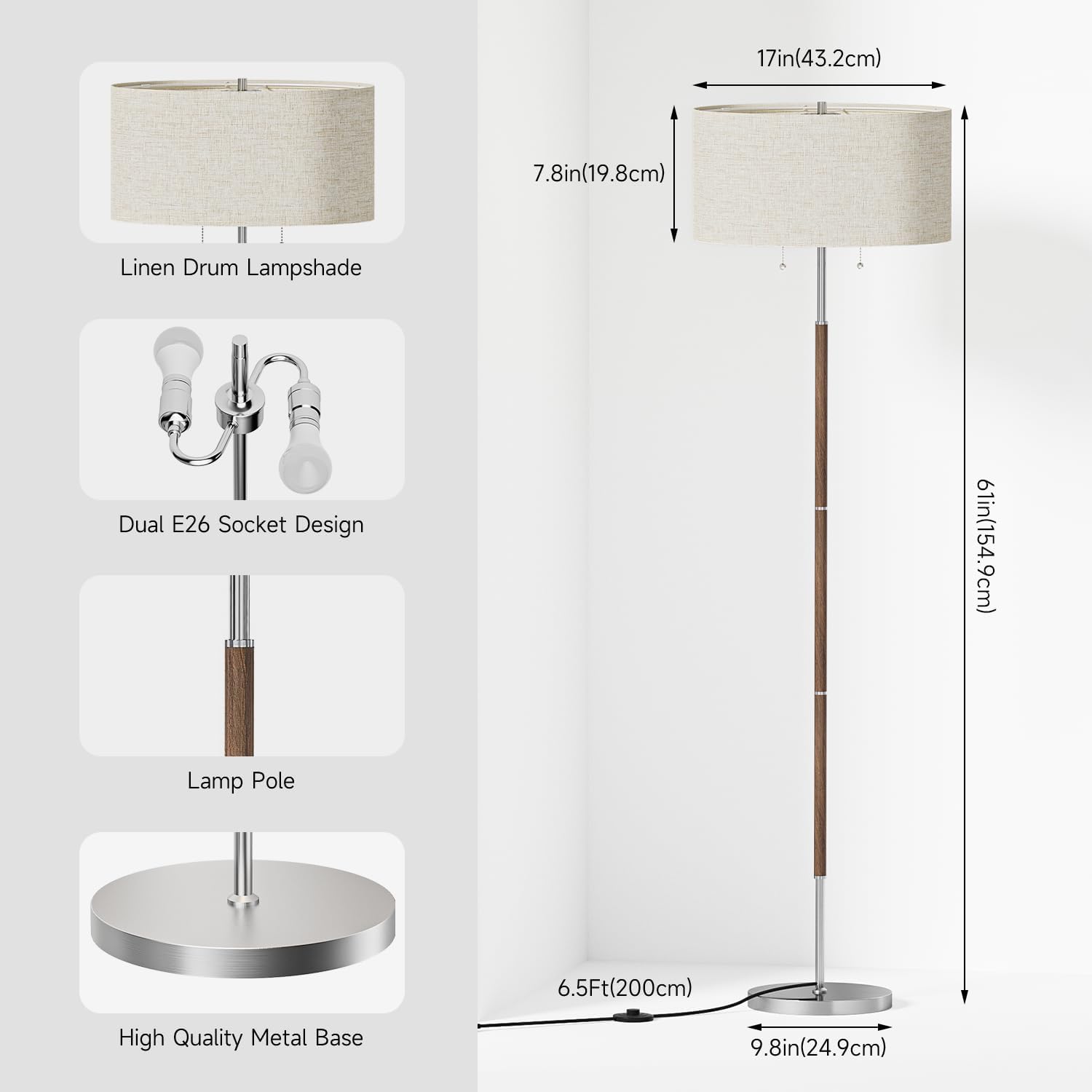 2-Light Floor Lamp, Mid Century Floor Lamp with Beige Lampshade, Standing Lamp Tall Lamp for Living Room Bedroom, 3 Color Temperatures 9W Bulb Include