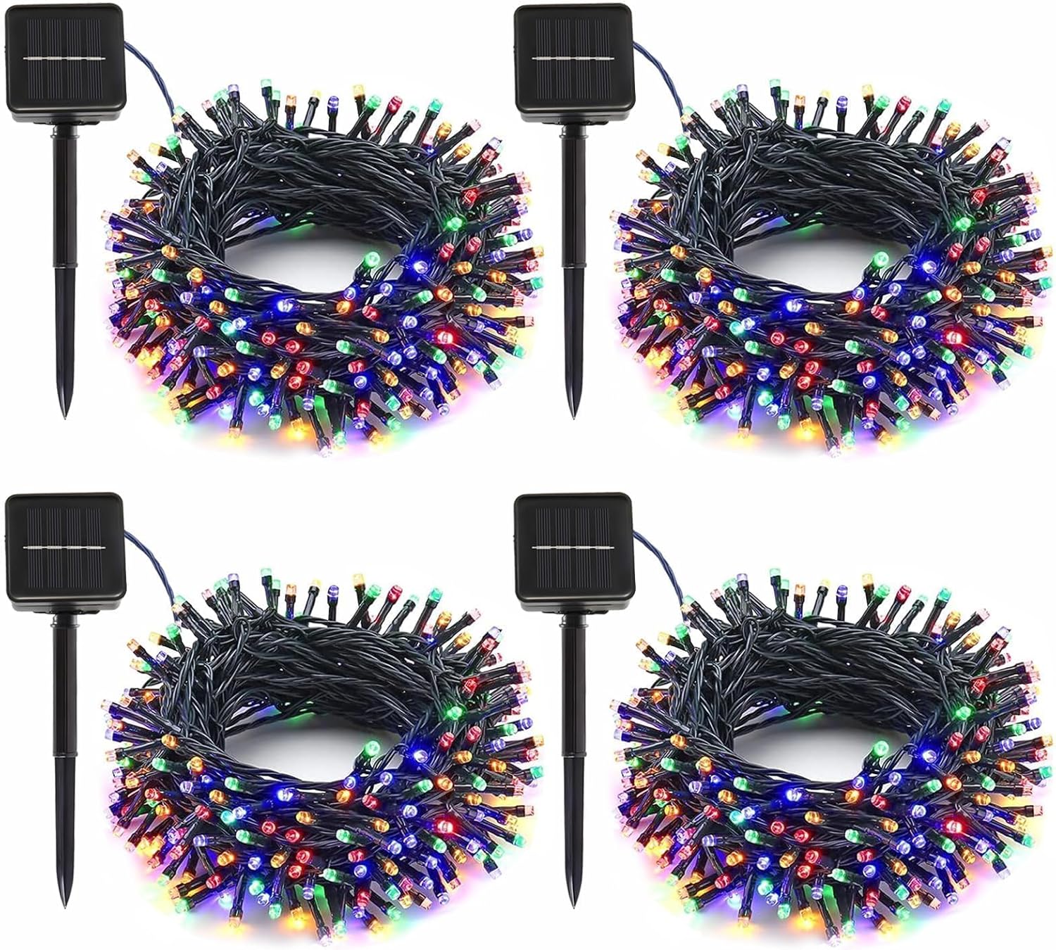 4-Pack Solar String Lights, 400 LED Extra-Long 156Ft Solar Christmas Lights Outdoor Waterproof, 8 Modes Multicolor Led Christmas Lights for Garden, Patio, Wedding, Christmas Decorations