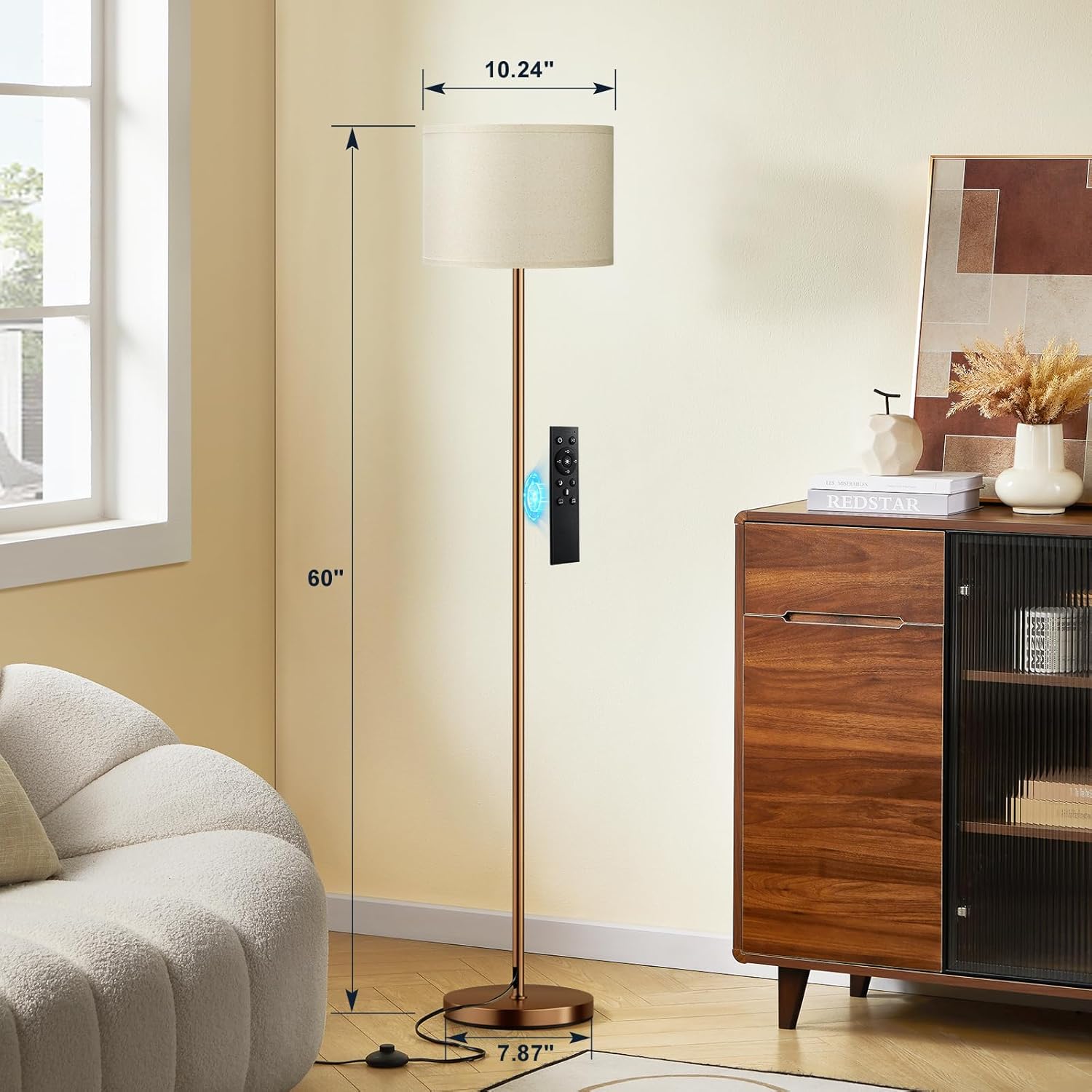 Ambimall Floor Lamps for Living Room with Remote Control and Stepless Dimmable Colors Temperature & Brightness, 9W Bulb Included(Beige Lampshade & Brown Pole)