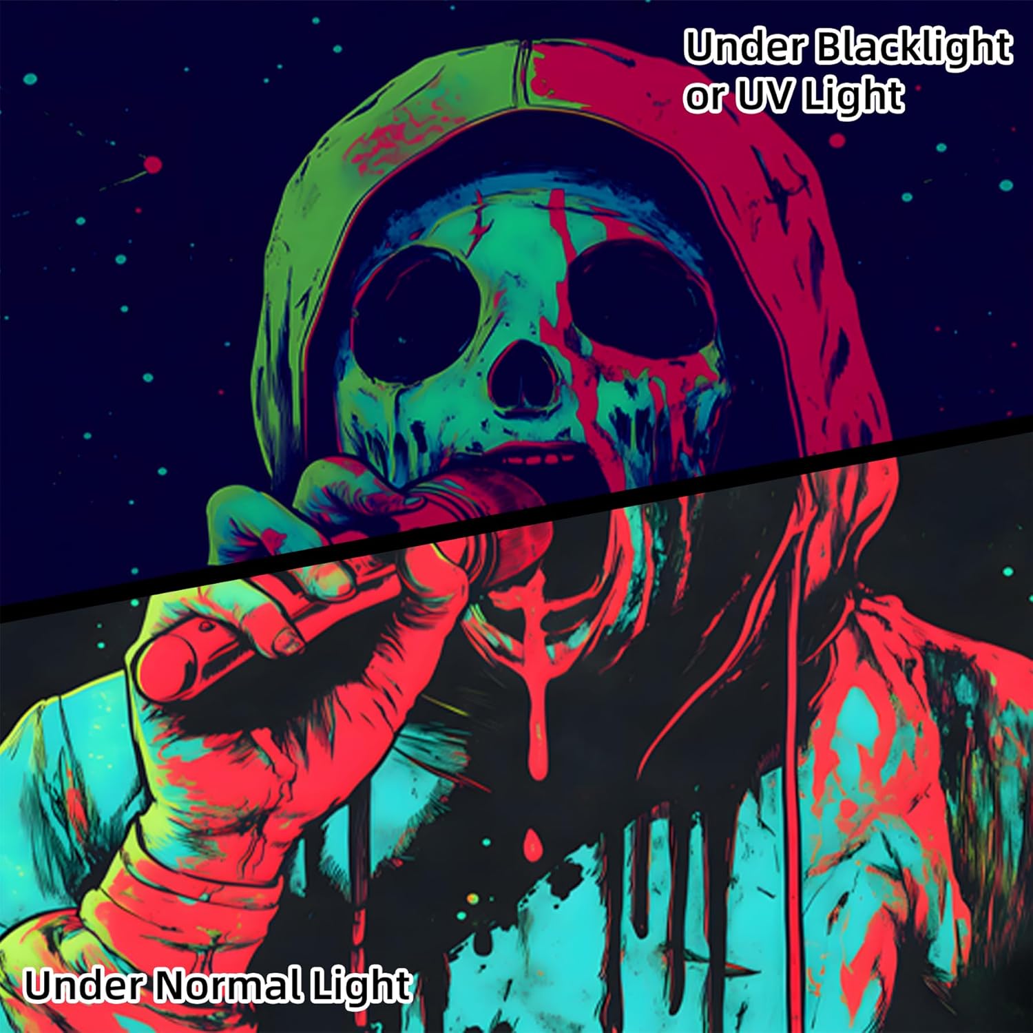 • 【Blacklight Tapestry】Designed for blacklight events, the intricate Halloween art on this blacklight tapestry pops with color in the dark.