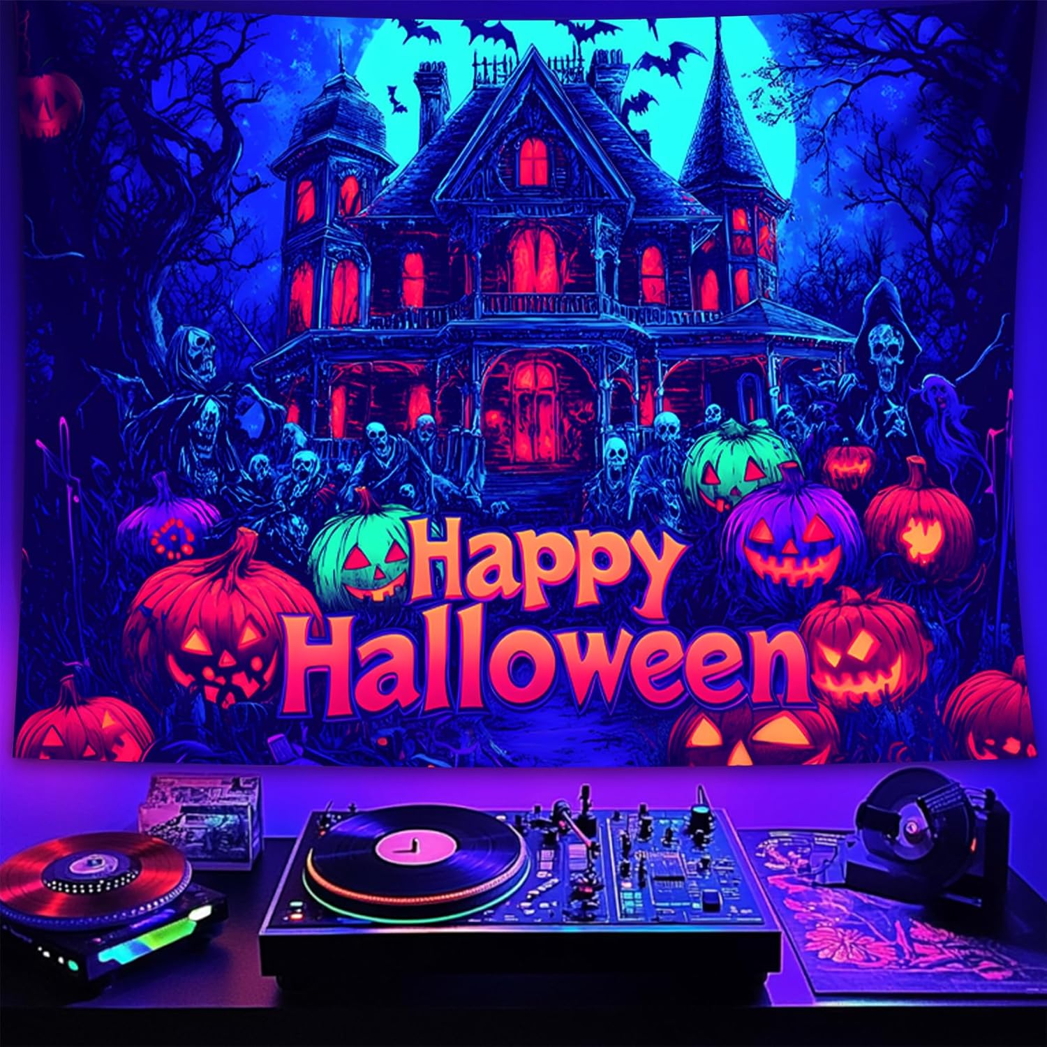 Halloween Tapestry, Blacklight Tapestry for Halloween Party Decor Hanging Tapestries Backdrop Wall Art Poster for Bedroom Dorm 90x70in