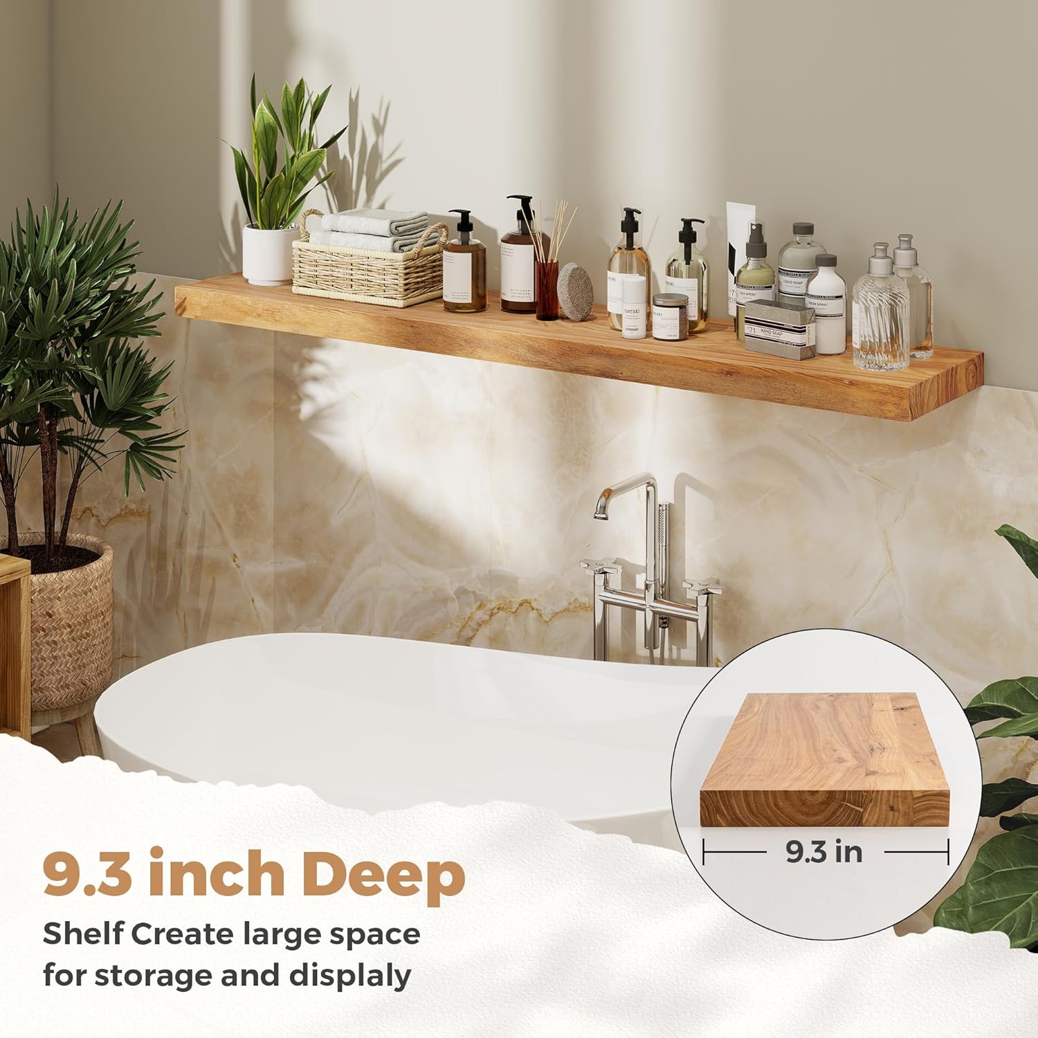 RICHFOCUS Elm Floating Shelves for Wall - 48" W x 9.3" D Rustic Solid Wood Shelves with Invisible Bracket, Wall-Mounted for Living Room, Bedroom, Kitchen Storage & Display, Set of 1, Natural