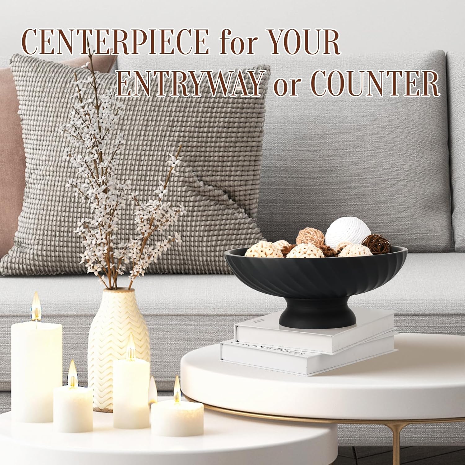 - ELEGANT CENTERPIECE:With elevated footed and rasied lines - original artwork, our large decorative bowl is ideal as a centerpiece bowl or a coffee table bowl to be used as a minimalist & fashionable artwork to anywhere in your home.