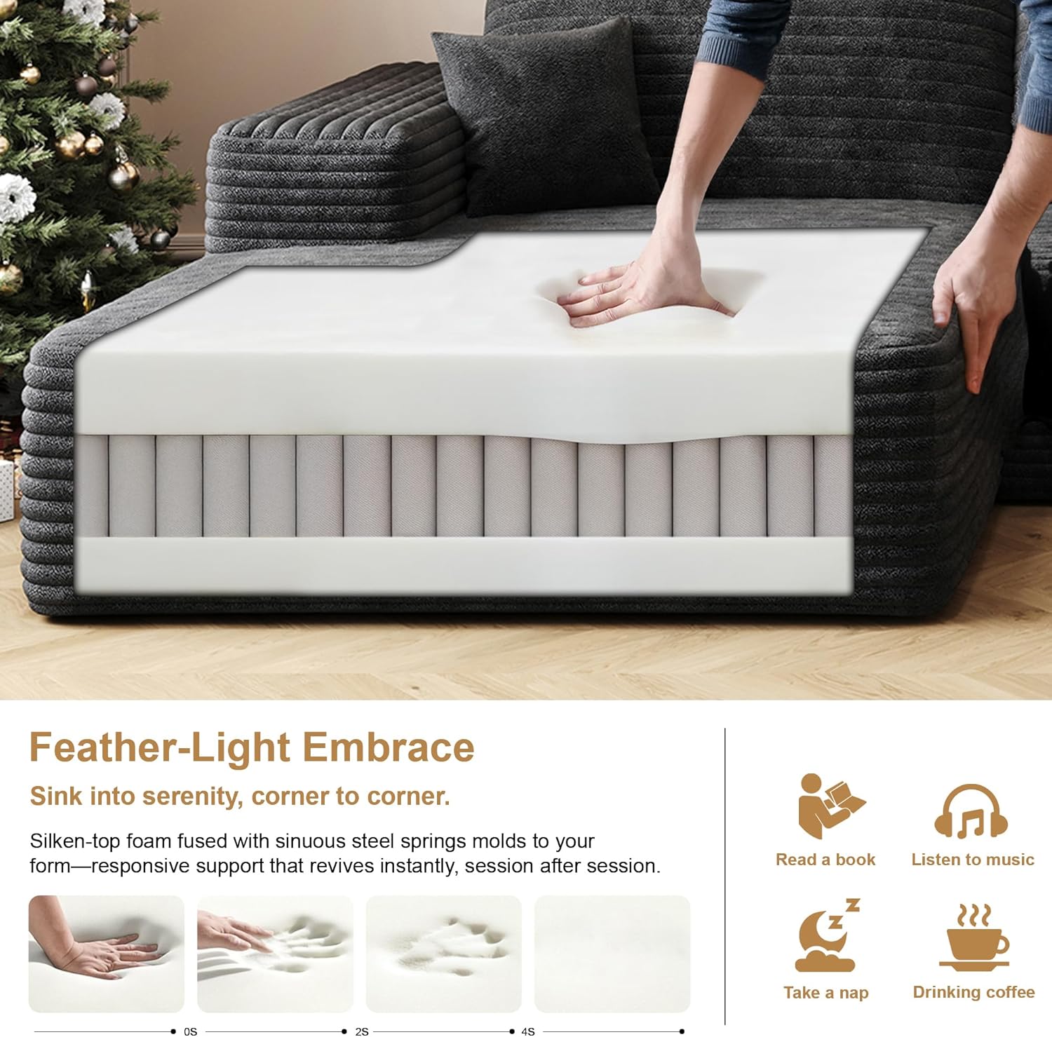 108" Sectional Couches for Living Room Modern Modular Sofa with L-Shape Couchs Upholstered Boneless Couch Deep Seat Sectional Couch with Chaise (Black, Left Facing Chaise+2Seaters+1Ottoman)