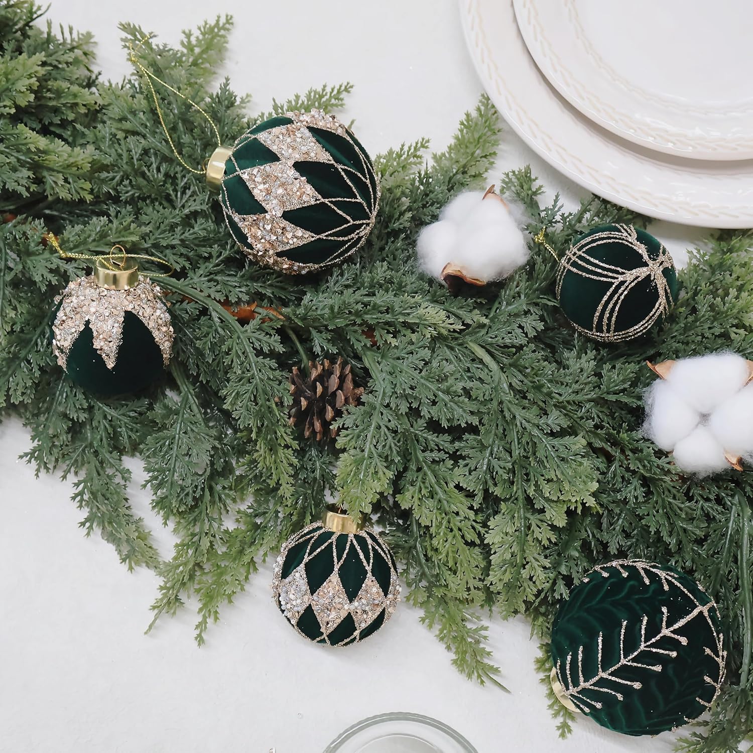 3.15INCH Green Velvet Ornaments for Christmas Tree, 12PCS Glitter Flocked Christmas Ornaments Decorations Balls Set Decor
