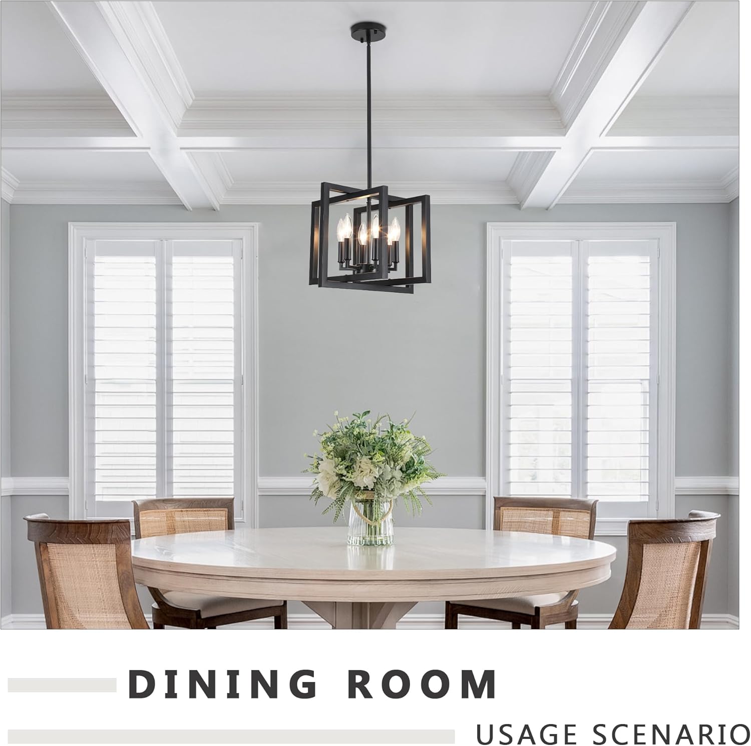 - Bulb Requirement: Equipped with 6-E12 bases, this dining room light fixture over table supports various bulb types, including incandescent, LED, CFL, and halogen (Bulbs NOT Included). Pair this black chandelier farmhouse light fixture with dimmable bulbs and a compatible dimmer switch (Switch NOT Included) for adjustable lighting