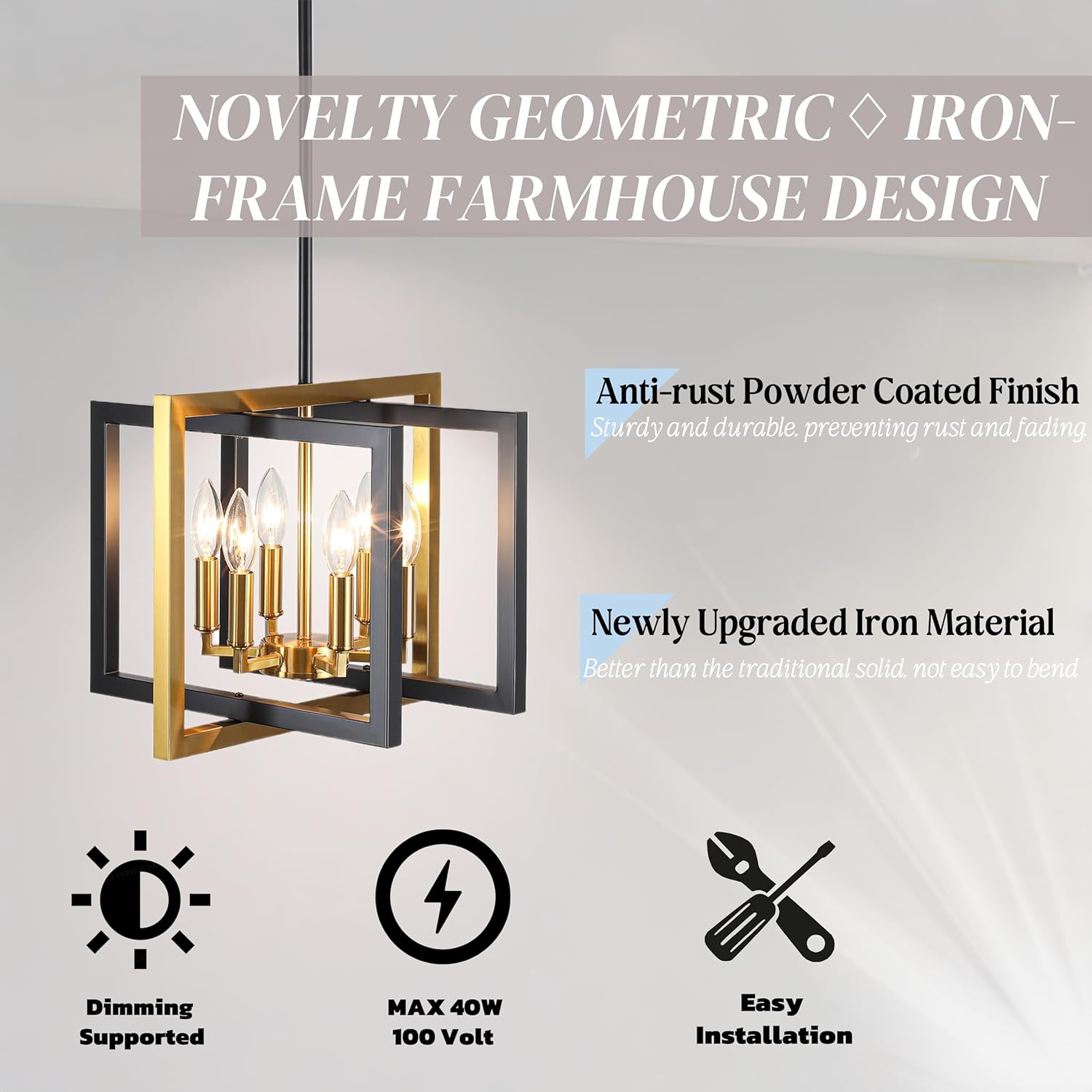 - Style & Design: This black and gold farmhouse dining room light fixture consists of a black and gold metal frame with a minimalist silhouette, which better balances aesthetics and functionality. The classy appearance gives a stylish and modern look that leaves a lasting impression, making it ideal for any space such as the kitchen island, bedroom, foyer, dining table, living room, entryway, farmhouse, and office
