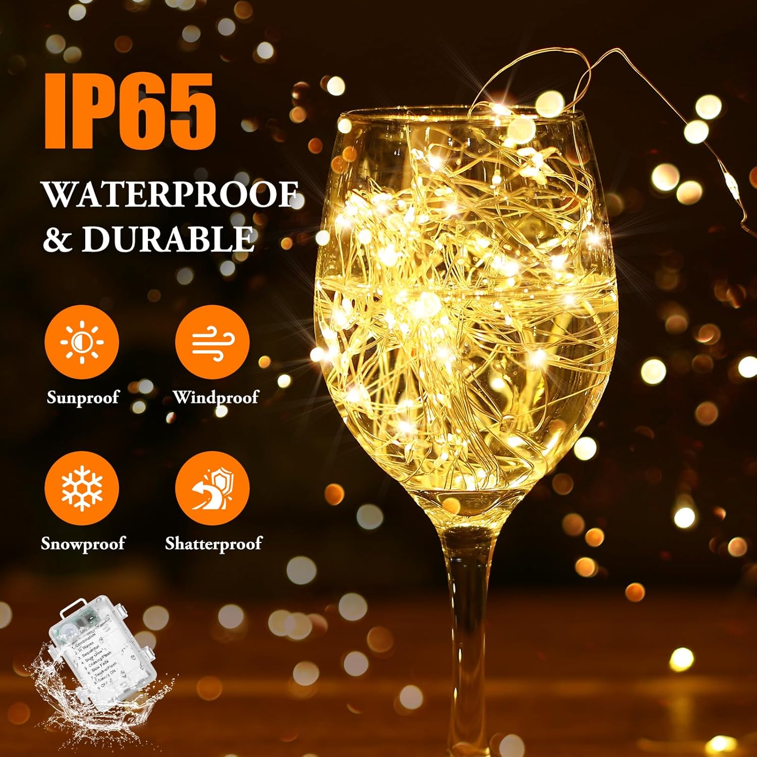- DIY Friendly, Flexible and Durable Copper Wire: Made with high-quality copper wire, the battery operated string lights are durable yet flexible. Easily mold them into any shape, perfect for DIY decor projects where creativity can shine