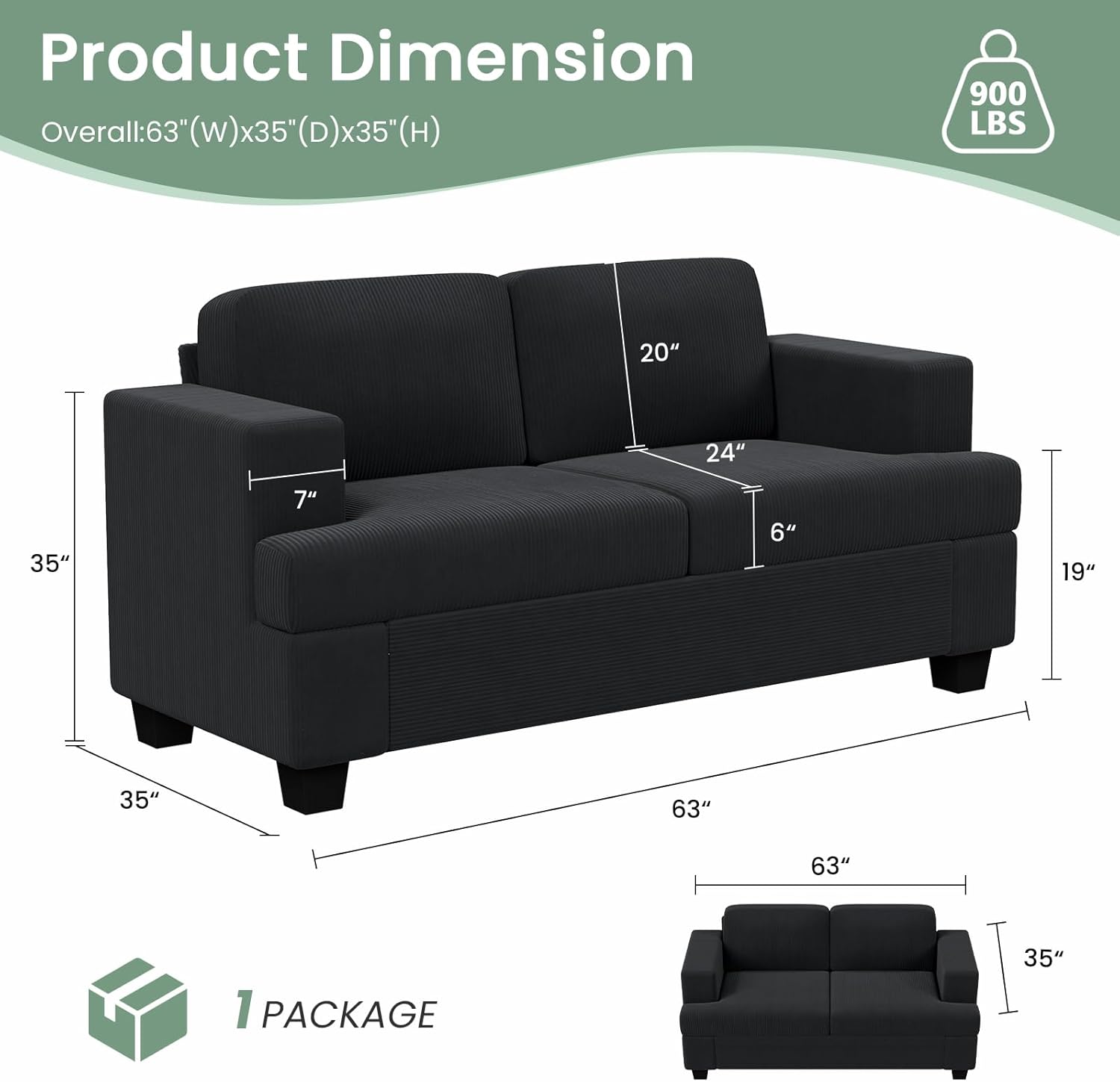3 Pieces Corduroy Couch Set for Living Room, 8 Seats Cloud Sofa, Deep Seat Floor Couch for Bedroom, Futon Modern Sofa Sectional Bed, Black Corduroy