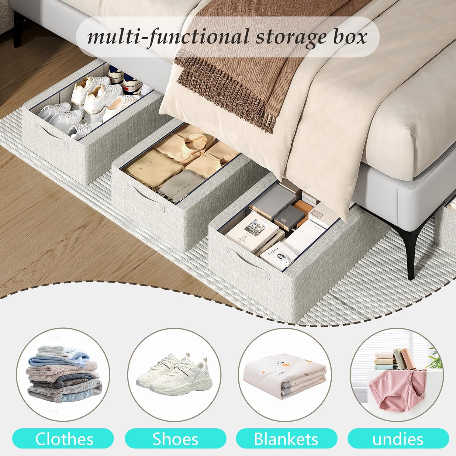 - CATEGORIZED and ORGANIZED TO SAVE SPACE - High-capacity set maximizes unused spaces under beds (>6" clearance), sofas, or closets for Seasonal clothing rotation (sweaters, swimwear), Blanket & comforter storage.