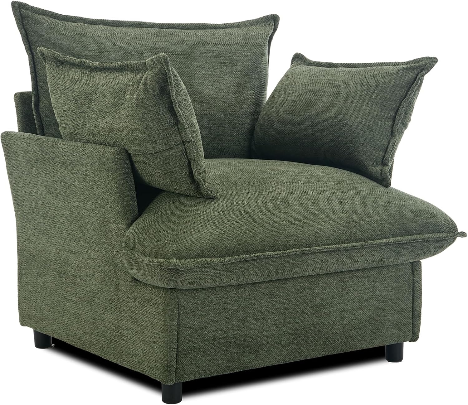 35.4" Wide Oversized Chenille Single Sofa Chair with 2 Pillows, Modern Upholstered Accent Chair Armchair for Livingroom Bedroom Apartment, Green