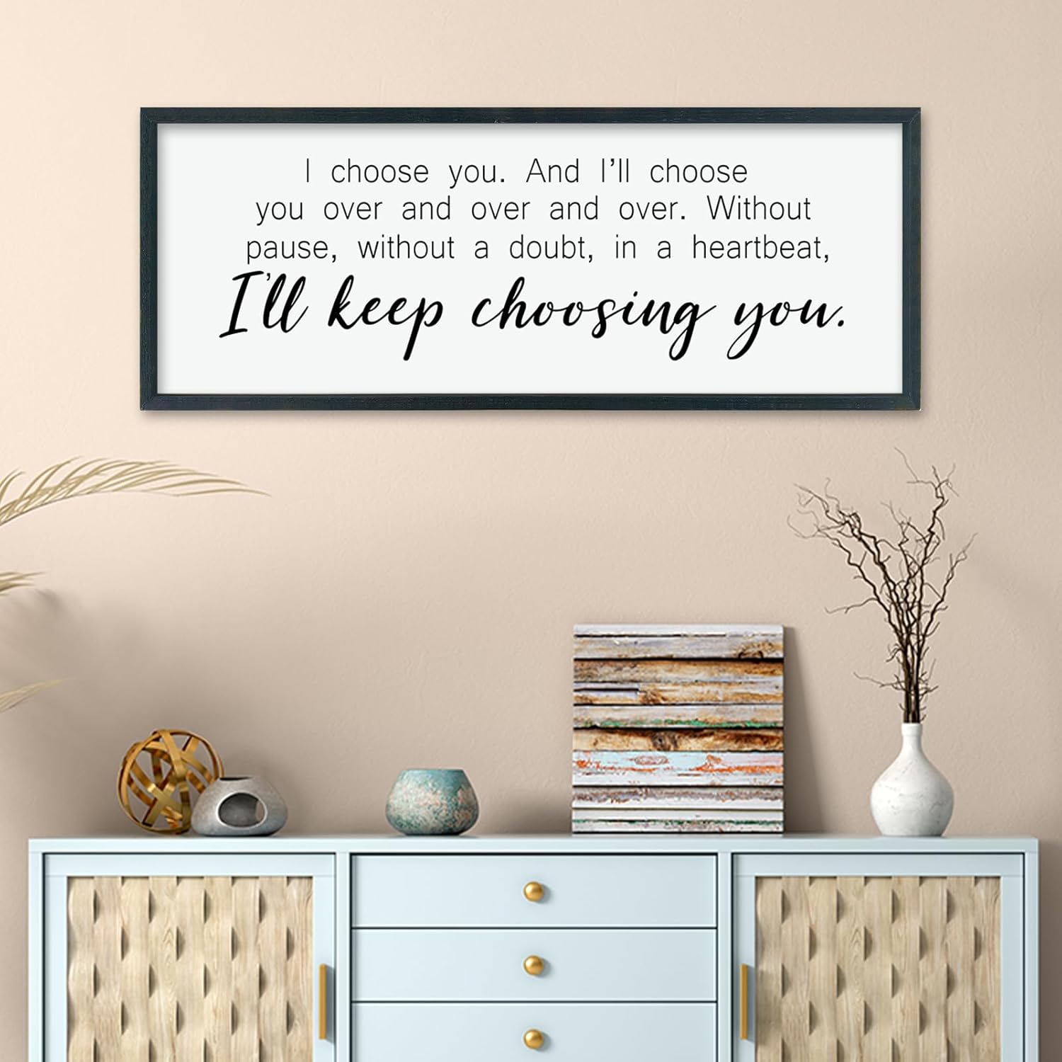 comurdyo I'll Keep Choosing You Sign 40"X15" for Master Bedroom Above Bed Wall Decor I Choose You Large Wood Framed Wall Hanging Art (Black)