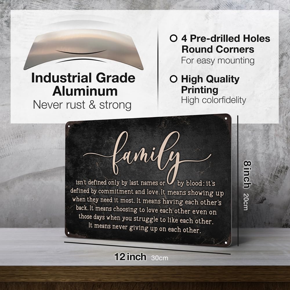 Heuhuww Family Isn't Defined Only By Last Names or By Blood Tin Sign for Home Office Room Wall Decor Gifts for Sister Best Friend Adopted Family 8"x12"(H23)