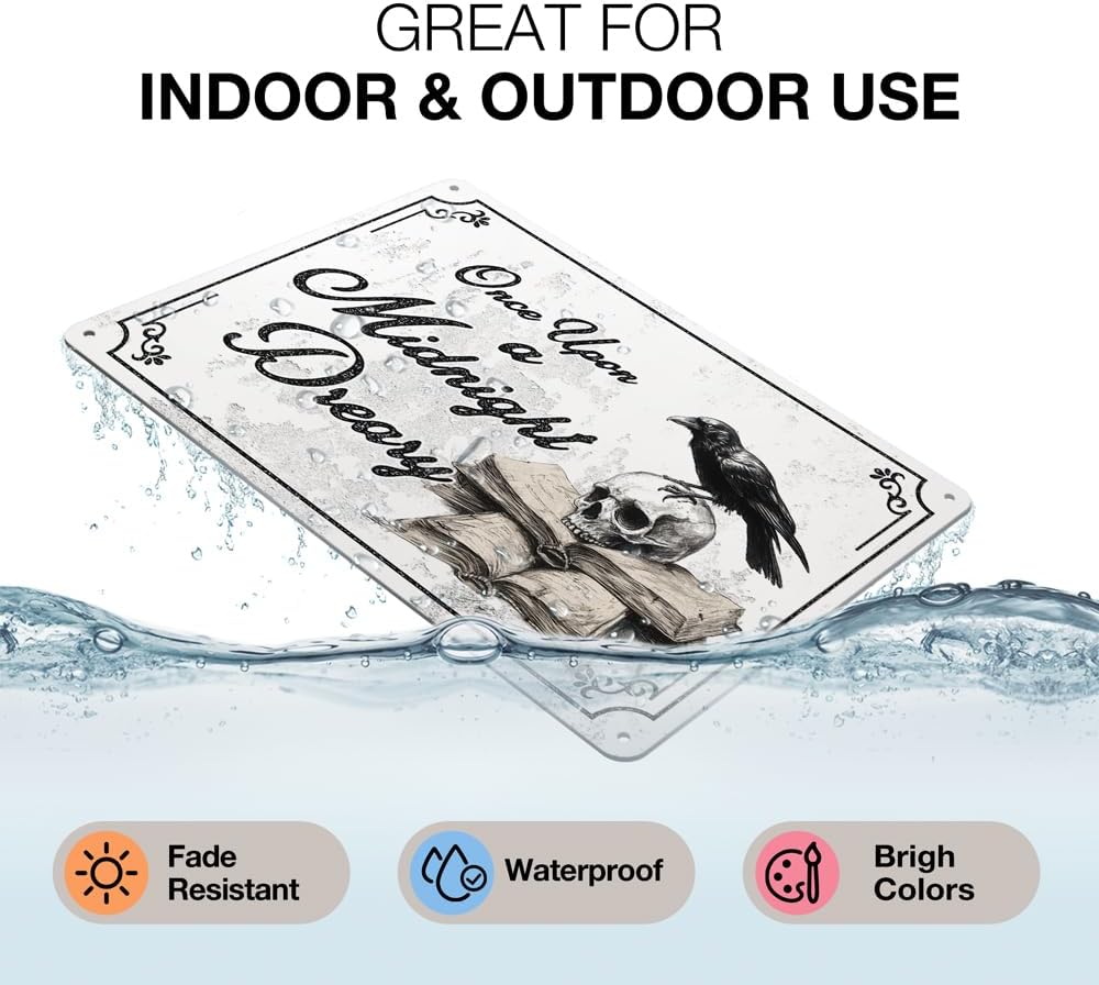 Heuhuww Vintage Gothic Wall Decor-Once Upon A Midnight Dreary Gothic Metal Sign for Home Room,The Raven, Literary Gift 8"x12"(H28)