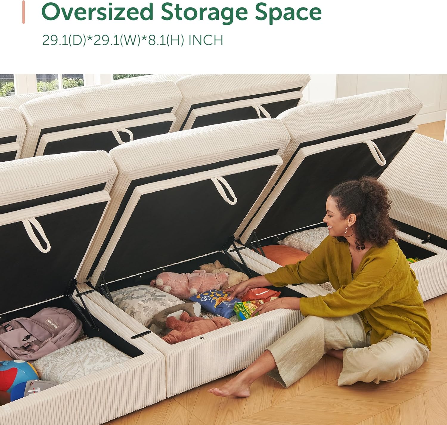 HONBAY Modular Sectional Sofa with Storage Corduroy U Shaped Sofa Modular Sectional Couches for Living Room,Beige