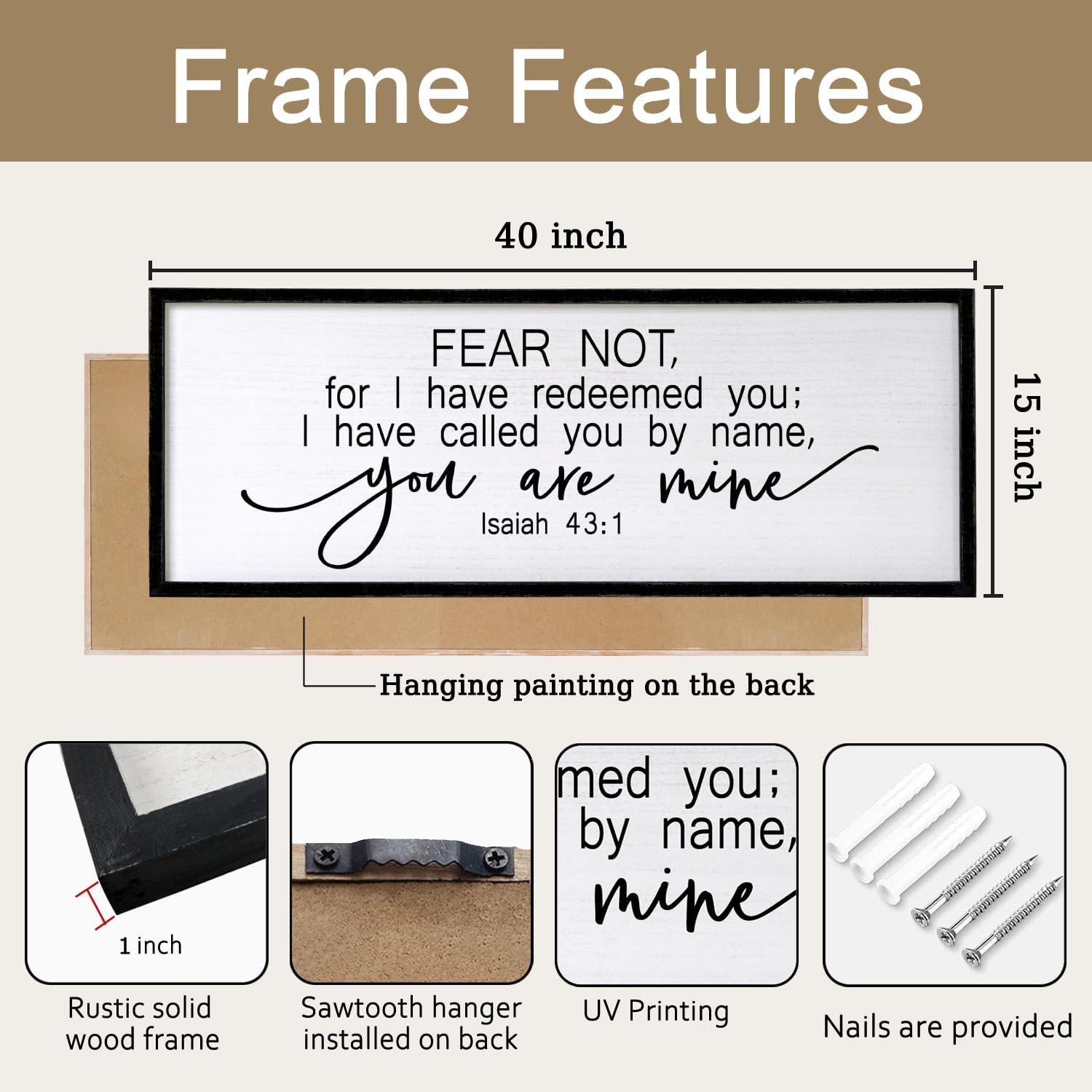 - 【Encouraging Words】 Fear Not wall hanging adopt minimalist letters “Fear not, for I have redeemed you; I have called you by name, you are mine.”, showing constant reminder of faith and devotion in any setting and you passion for god, adding a touch of elegant, and classic beauty to your space and giving people a calming feeling.