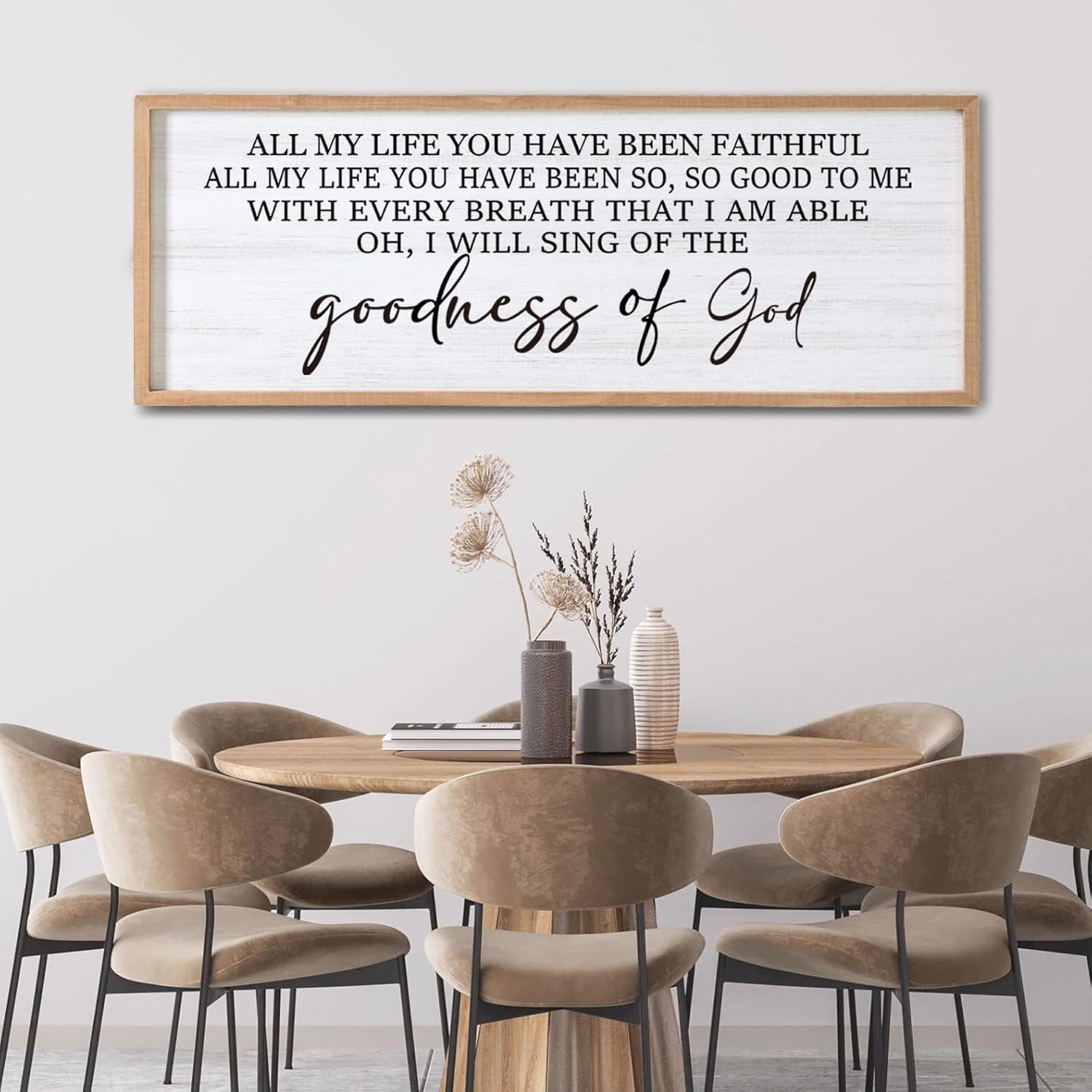 - 【Encouraging Words】Goodness of God large hanging wood sign adopt minimalist letters on the white background, showing constant reminder of faith and devotion in any setting and you passion for god, adding a touch of elegant, and classic beauty to your space and giving people a calming feeling.