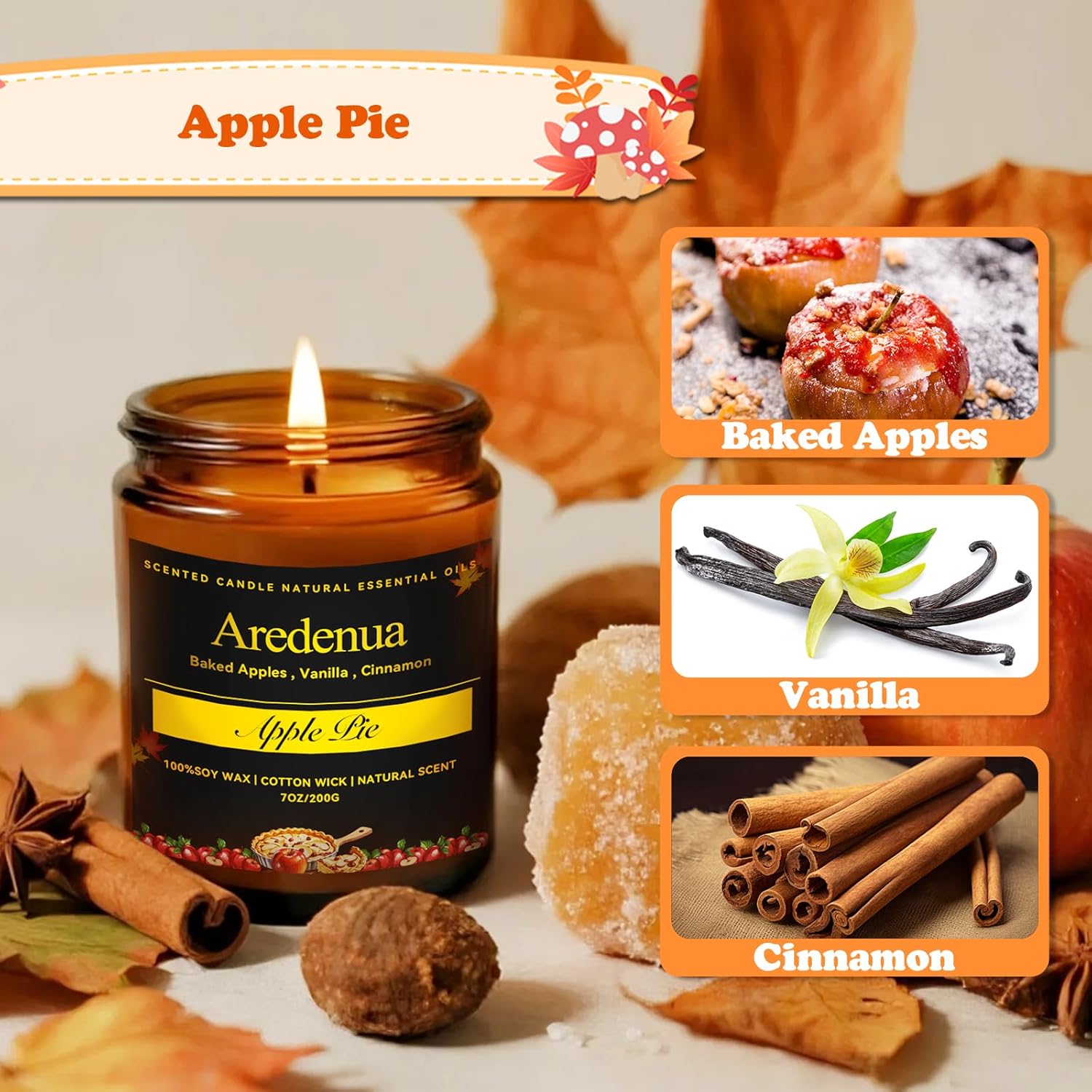 Fall Candles - Apple Pie Candle | Apple Scented Candles for Thanksgiving, 7oz Fall & Winter Soy Candle for Home Scented, 50 Hours Burn Time, Harvest Holiday/Halloween/Autumn Gifts for Women Men
