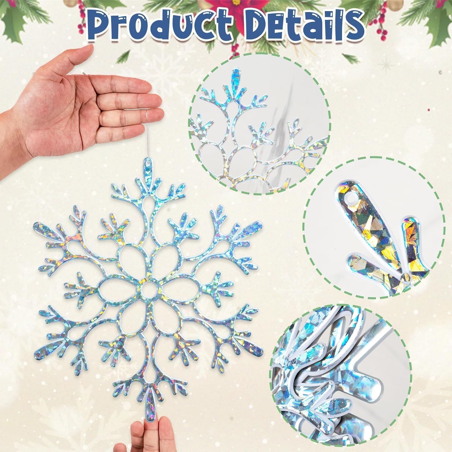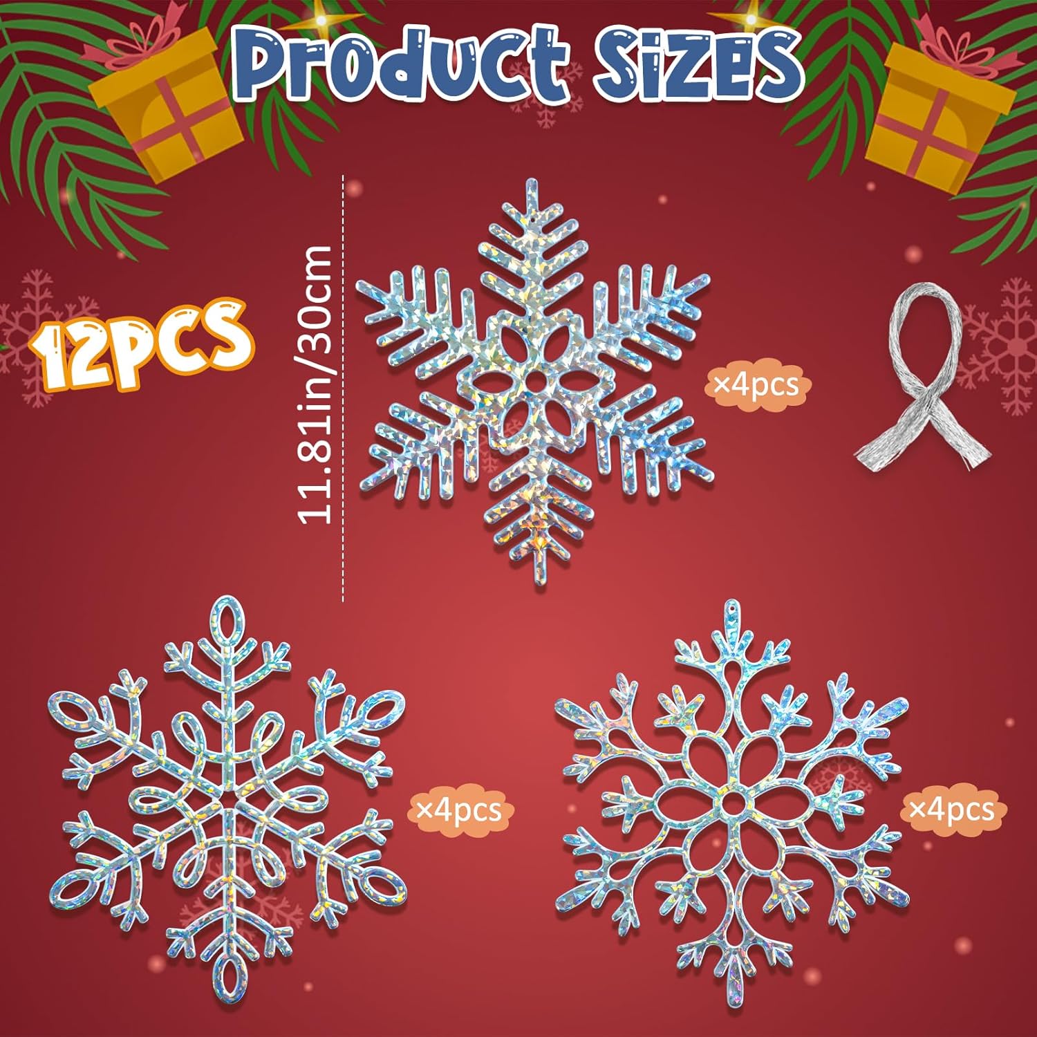 - Valuable Package:You will receive 12pcs large iridescent Christmas snowflake decorations in different styles, measuring about 12" in diameter, large enough to be seen from afar, beautiful and vivid when hanging as your winter outdoor Christmas decorations