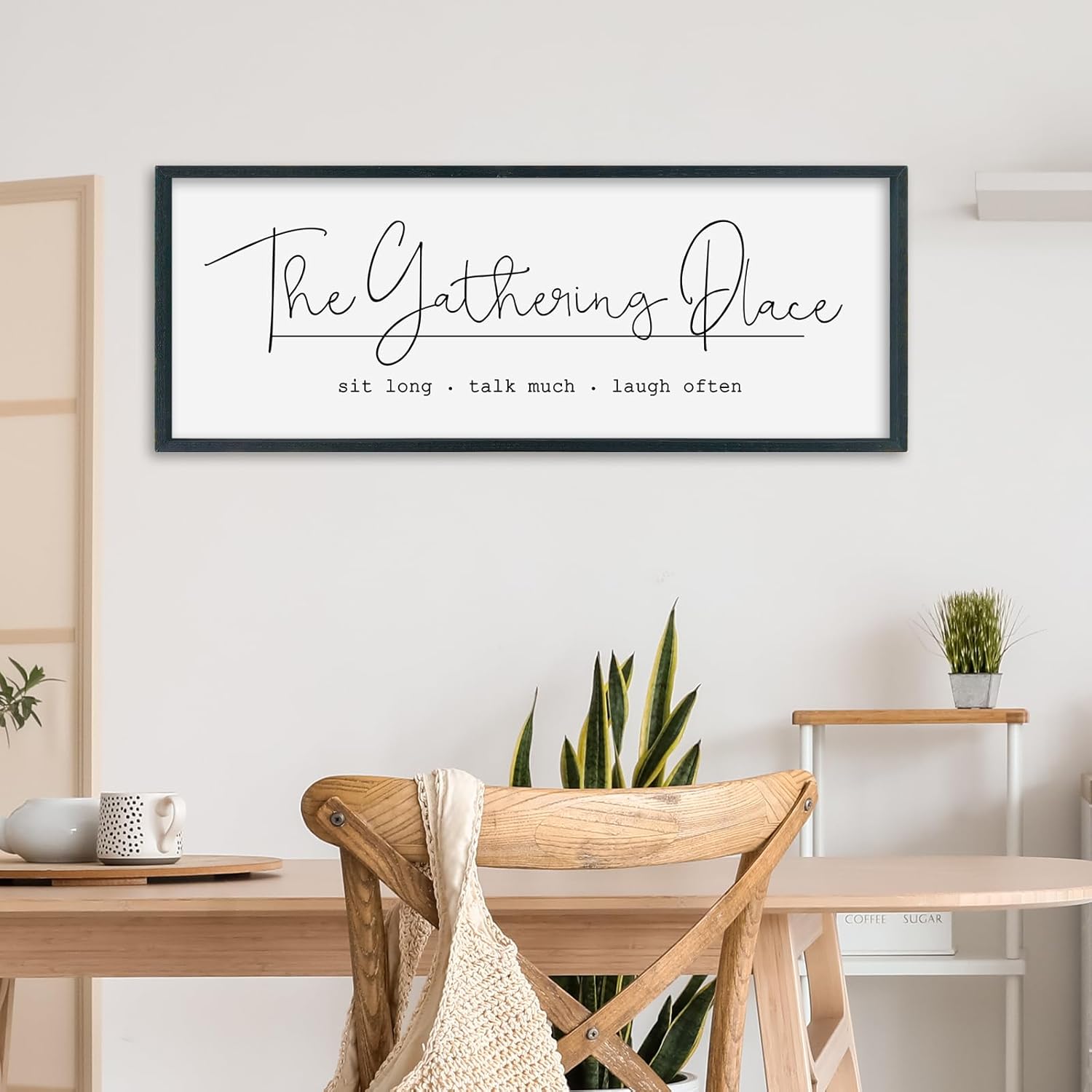 SRSZHIYUE The Gathering Place Sign Wall Decor Art 40"×15" for Large Kitchen Dining Room Wood Framed Wall Hanging (Black)