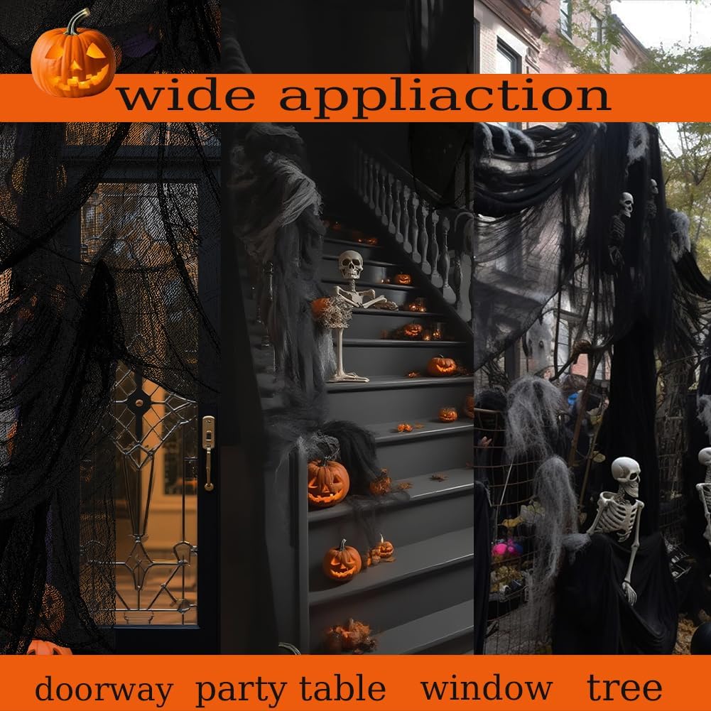 - 👻 ENDLESS CREATIVE POSSIBILITIES Pair it with spiders, skeletons, or other Halloween props—or cut and tear holes for a tattered ghostly effect. Trim into strips and drape from lights, trees, or furniture to create a haunting atmosphere.