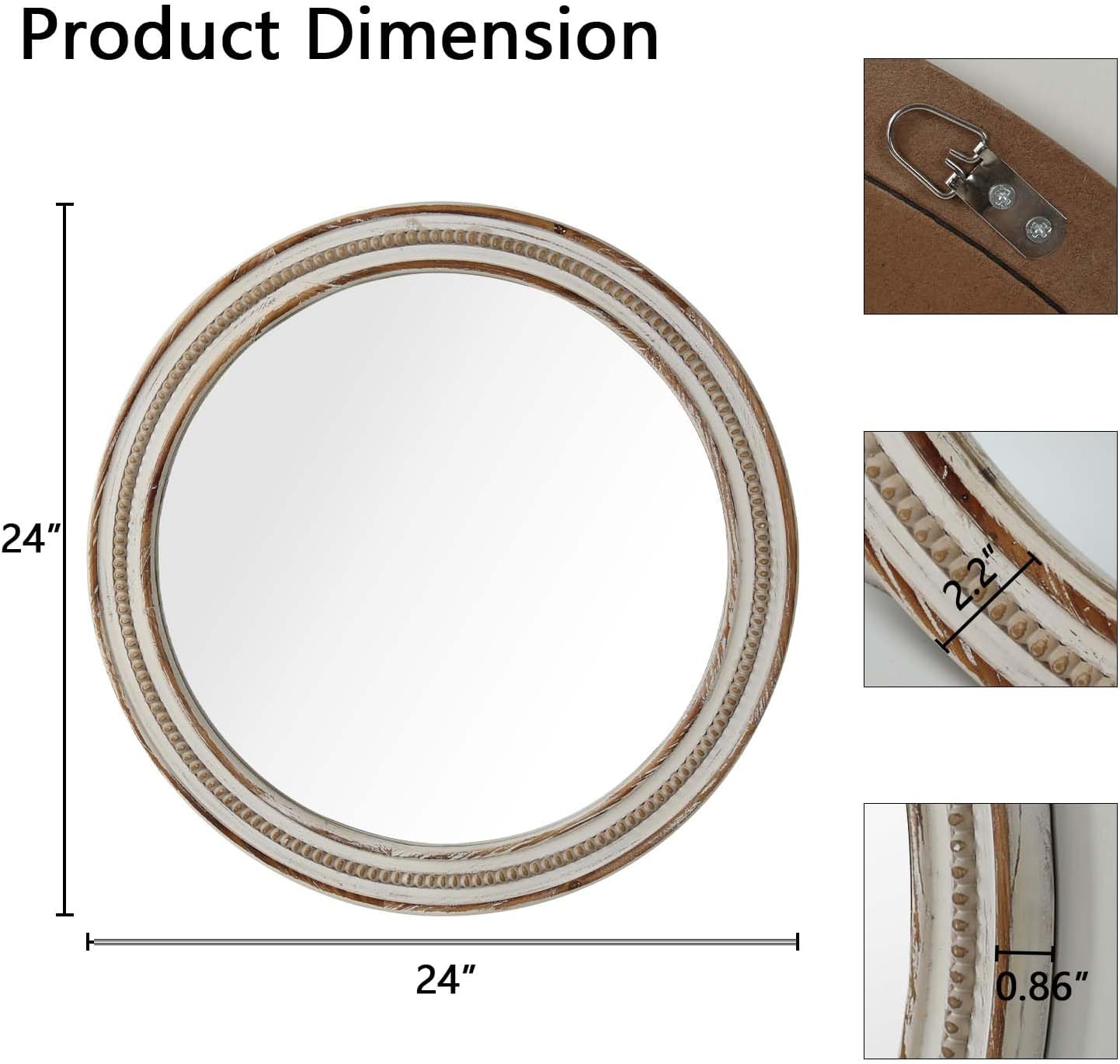 24 Inch Round Mirror - Distressed Vintage Farmhouse Mirror for Bathroom Wall, Living Room, Bedroom & Entryway, Handmade Wood Frame