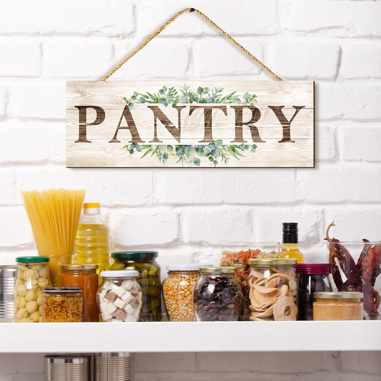 Bathroom Kitchen Laundry Pantry Sign Wall Decor 4 Piece, Wall Art with Plant Print, Rustic Farmhouse Wall Hanging Plaque Home Kitchen Decorative Bathroom, 4.7 x 13.7 inches
