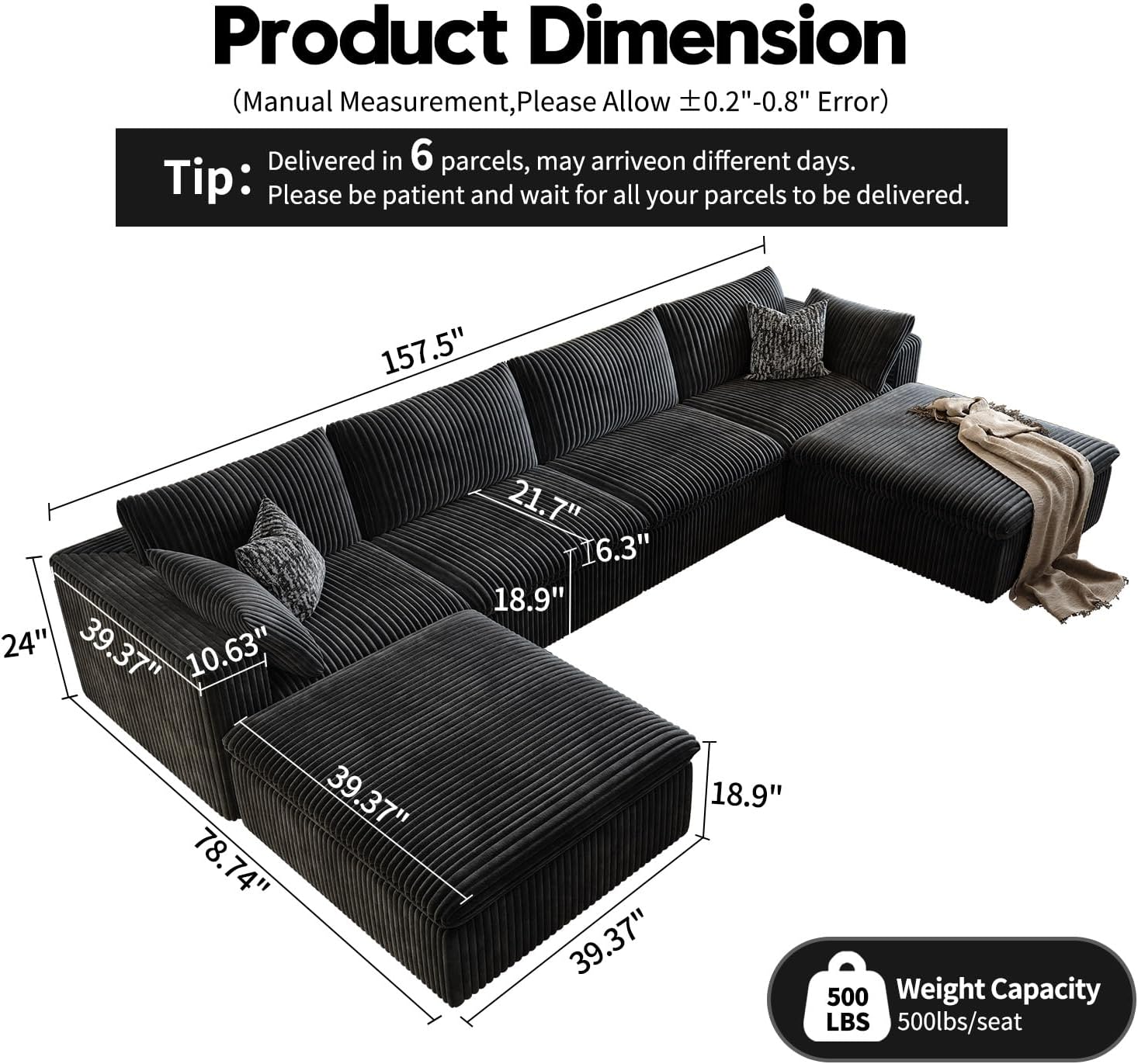 - Tips: 6 Boxes Packaging and sometimes they arrive at different times.Due to the sponge rebound, when just unpacked, the size may deviate from the picture size, after 72 hours of resting, the product size will be restored to the size of the picture If you have any questions about your cloud couch or need assistance, please reach out to us as soon as possible.