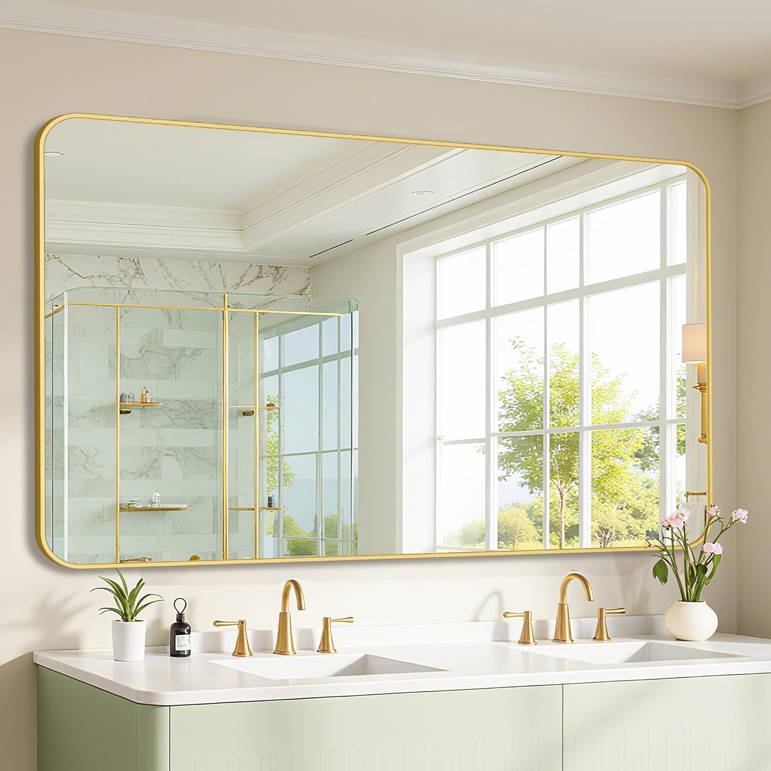 - Aluminum Alloy Frame: Built with a high-quality, rust-proof, and anti-corrosion gold metal frame, this rectangular mirror withstands humidity and adds a sleek, modern touch to any room