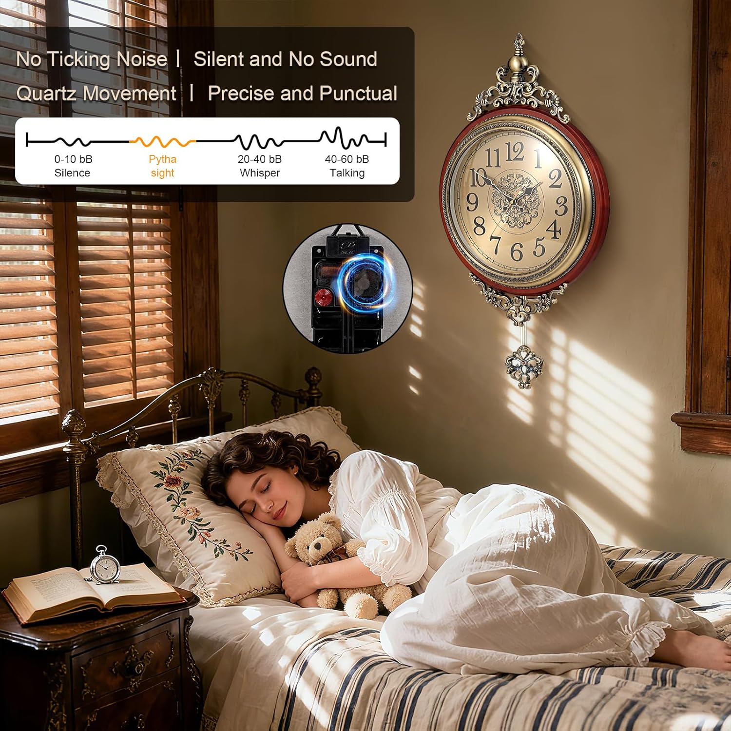 - 🔇 [Absolute Silent & High-Precision Movement] Enjoy perfect tranquility with our advanced silent quartz movement. Unlike traditional clocks, this pendulum clock guarantees no disruptive ticking sounds, allowing you to sleep, work, or relax in peace. It provides accurate and reliable timekeeping for years to come.