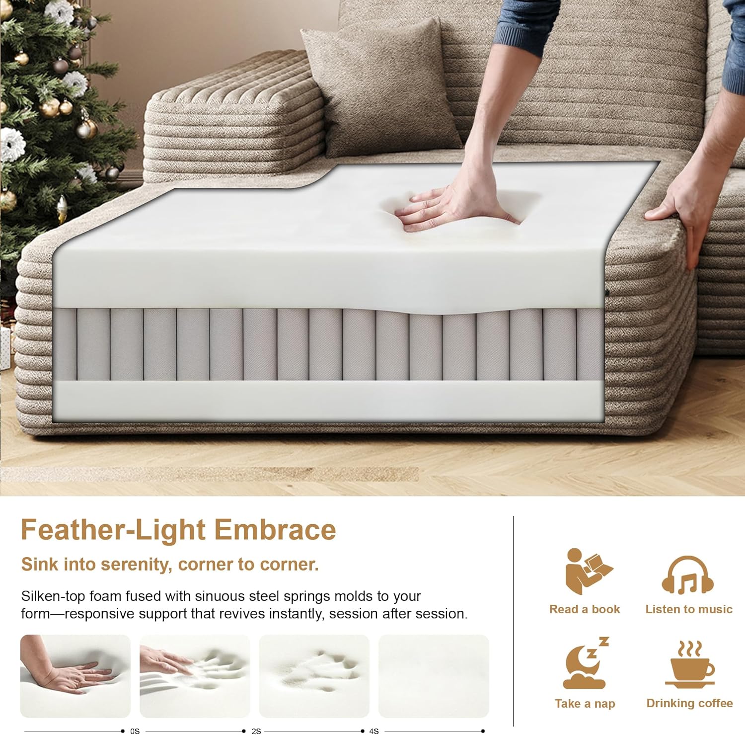 108" Sectional Couches for Living Room Modern Modular Sofa with L-Shape Couchs Upholstered Boneless Couch Deep Seat Sectional Couch with Chaise (Camel, Left Facing Chaise+2Seaters)