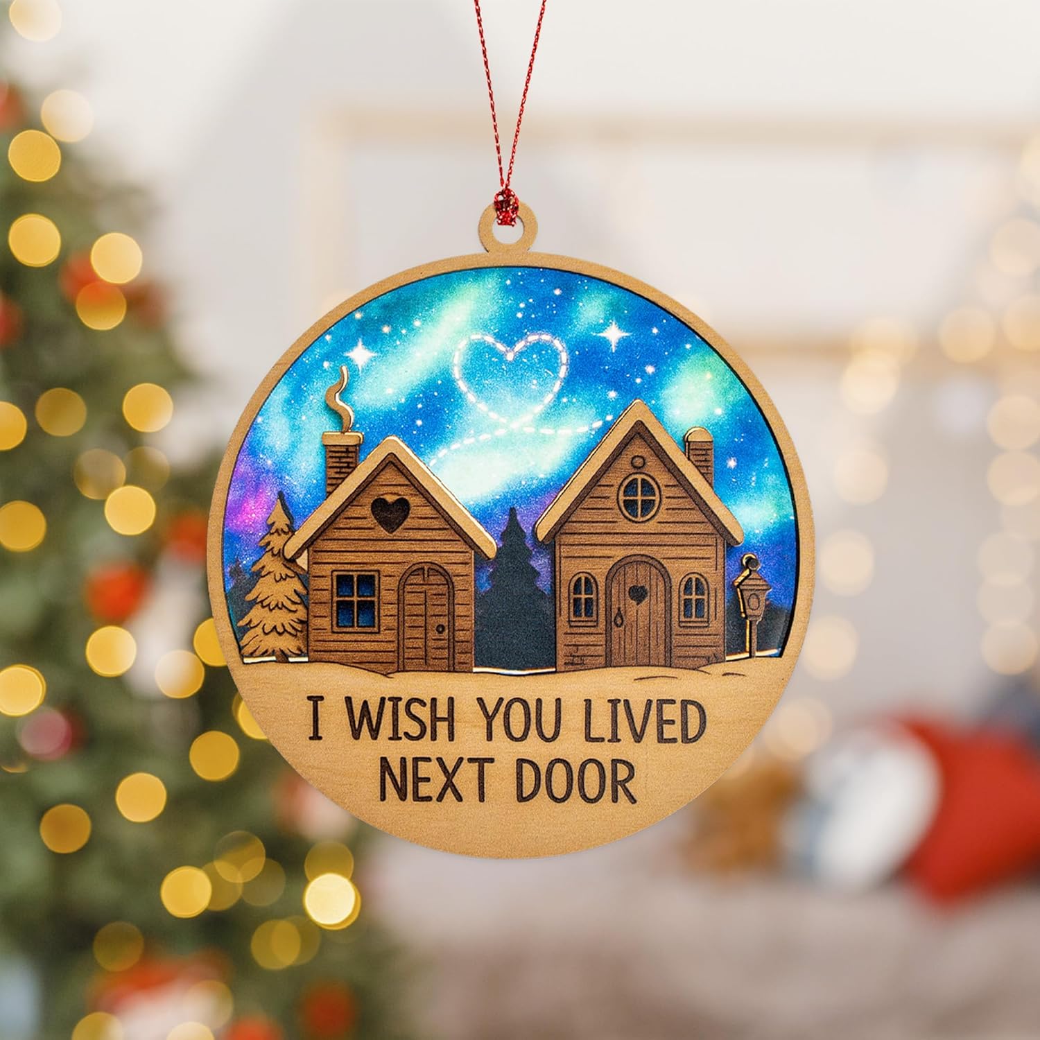 - 🏡 A Heartwarming Gift for Someone You Miss Deeply Whether it’s a childhood friend, a long-distance sibling, or the neighbor who moved away, this ornament says what words often can’t: “I wish you lived next door.” A perfect token of love, longing, and connection across the miles.