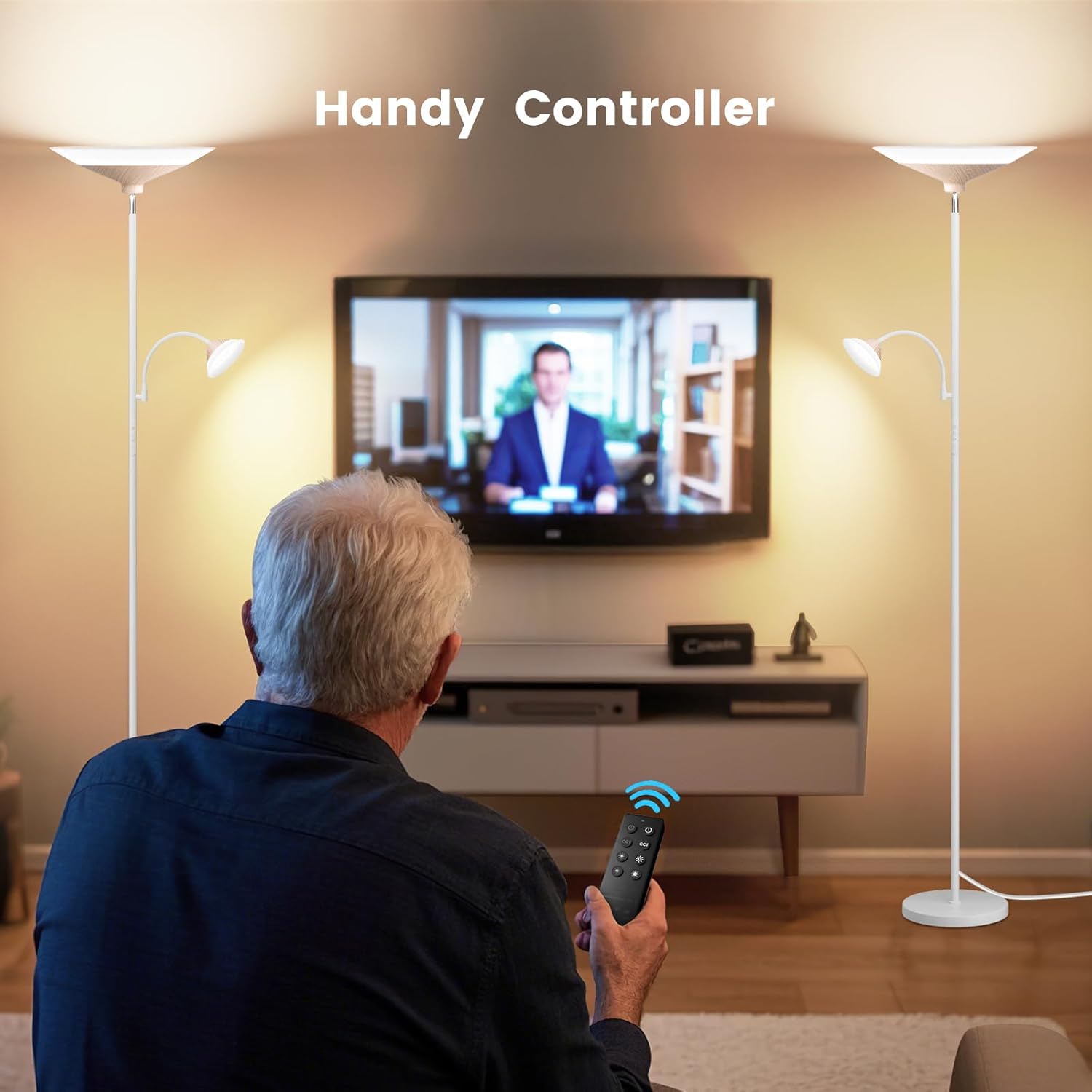 - 【Independent Control】Our standing lamp, designed with 2 lights, 34 watt, switch each light separately via touch-sensitive panel or remote controll, you can turn on one light or two according to your mood and need.