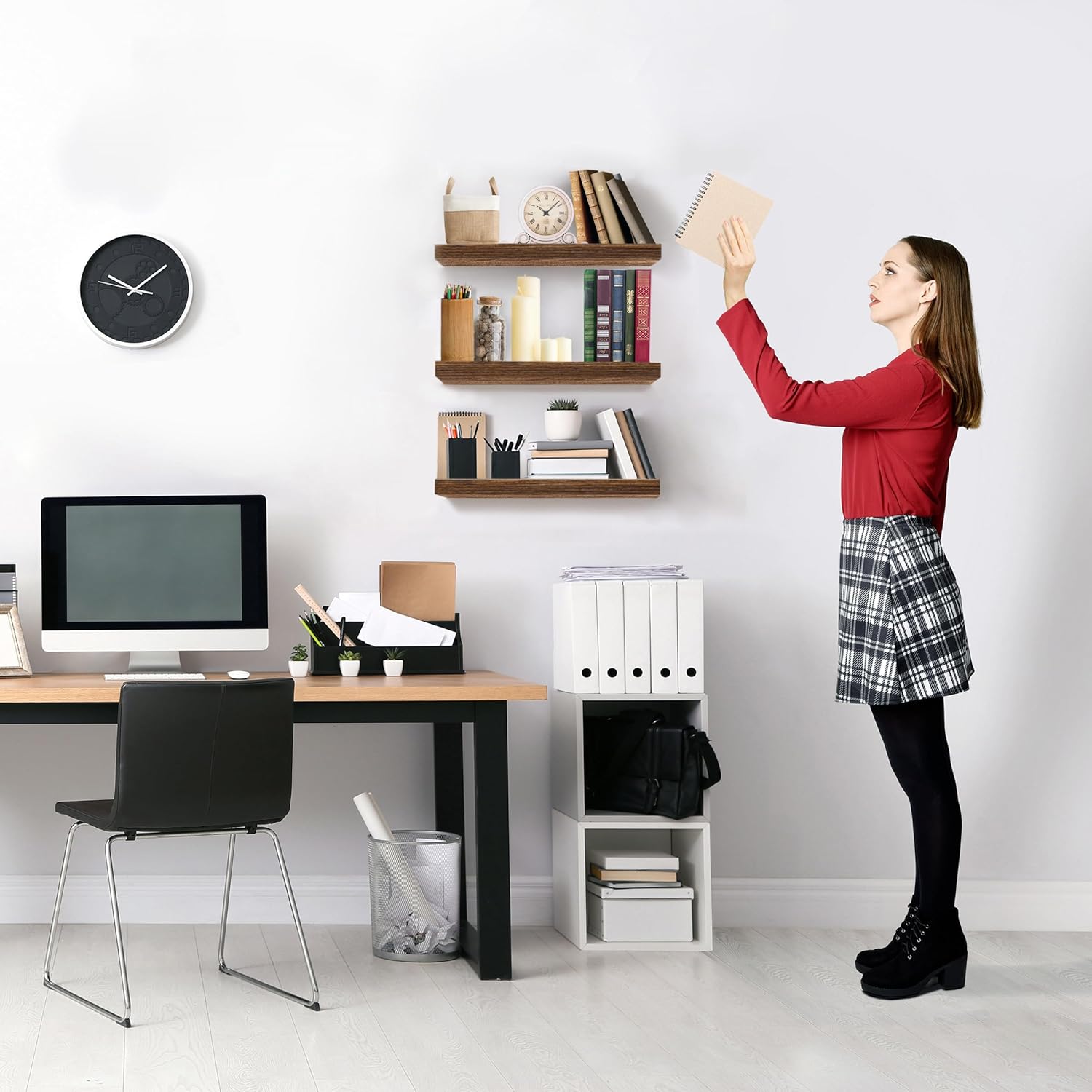 Sorbus Floating Shelves for Wall, Bathroom Shelves Wall Mounted for Kitchen, Bedroom, Bathroom Storage Over Toilet, Hanging Book Shelf for Wall Home Decor Living Room (Walnut, 3 Pack)