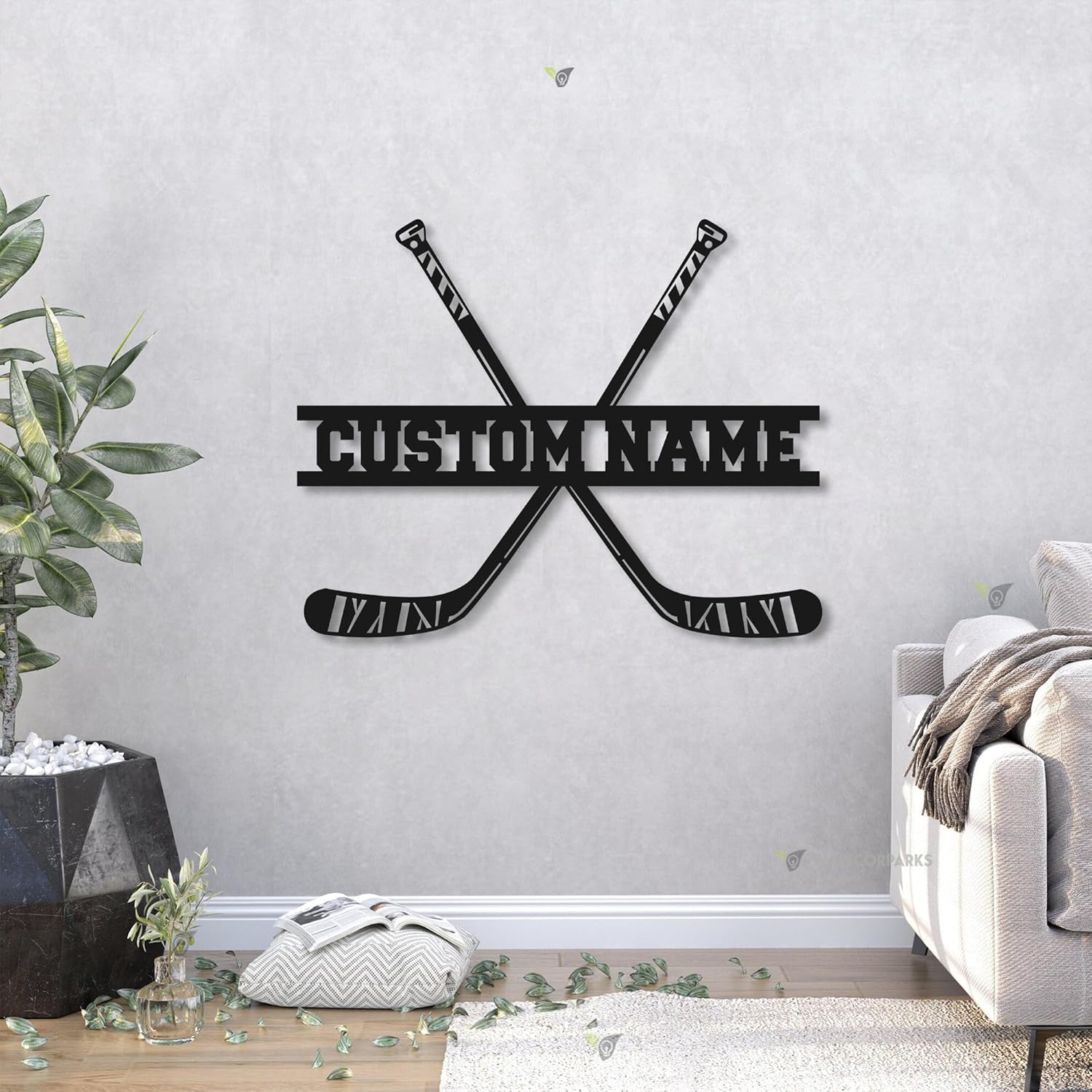 Hockey LED Wall Sign - Hockey Sticks Custom Name Light Up Wall Art, 16-Color LED with Remote Control, Hockey Decor for Bedroom, Locker Room, Fan Gift