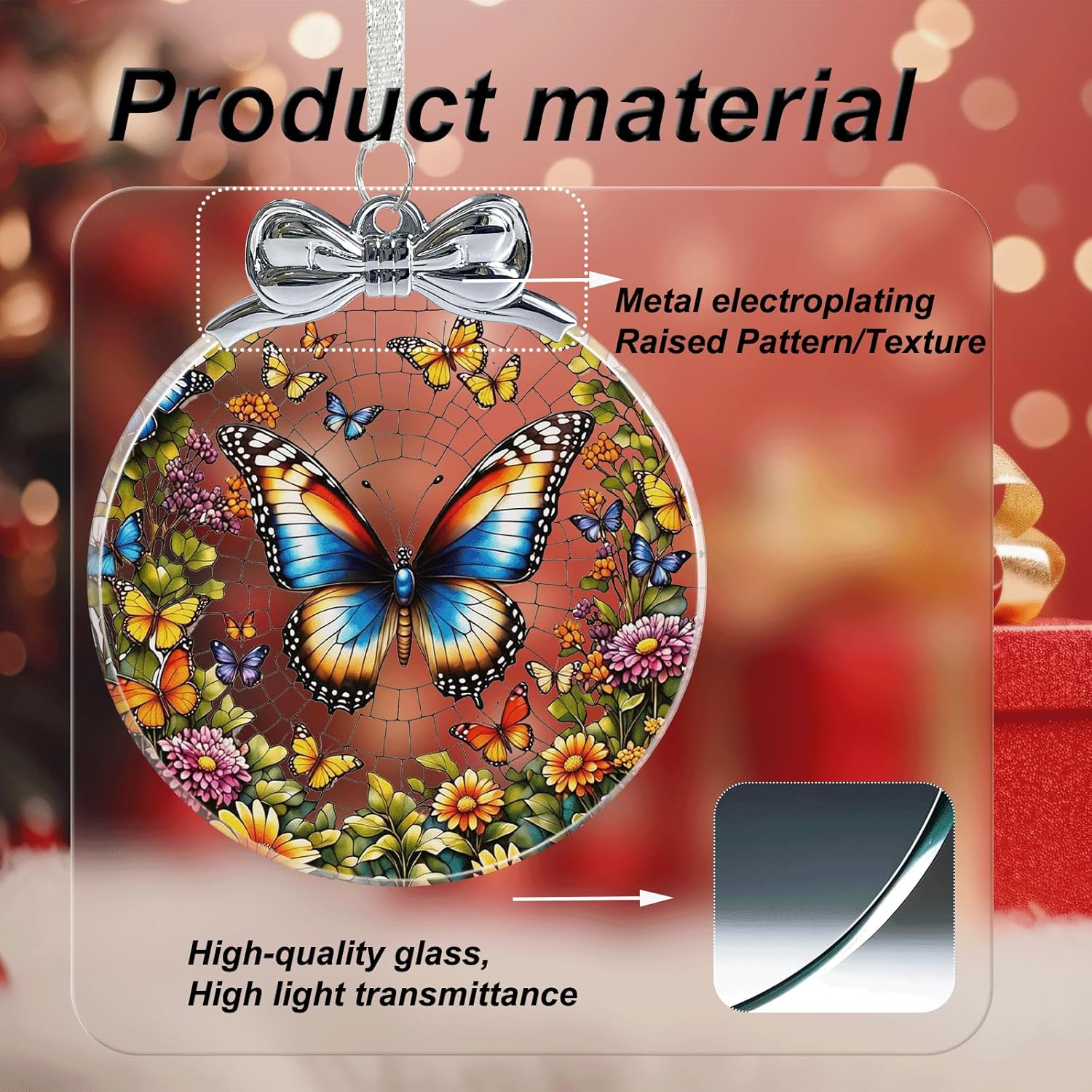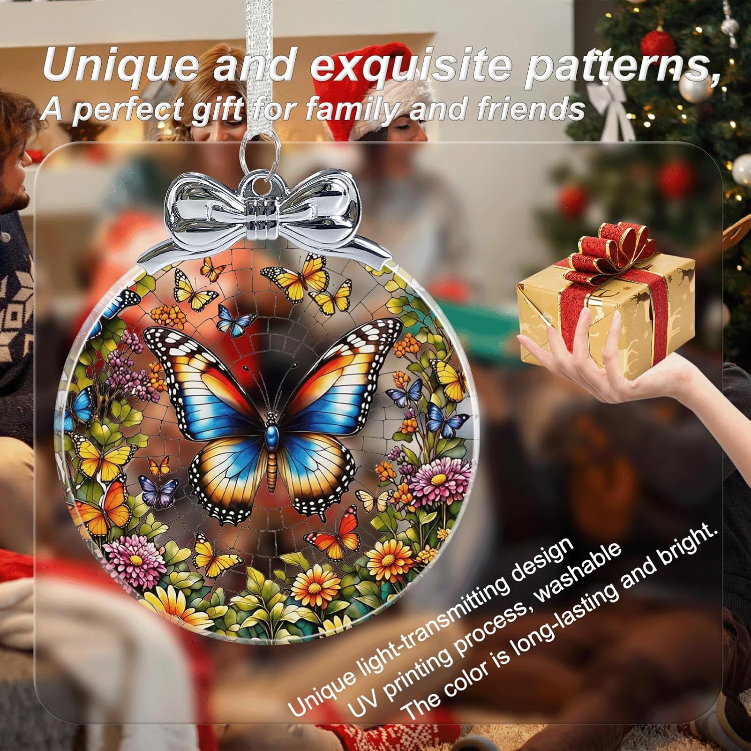 Butterfly Stained Glass Christmas Ornament - Hanging Ornaments for Christmas Tree Decorations -Holiday Keepsake Present Exchange Idea