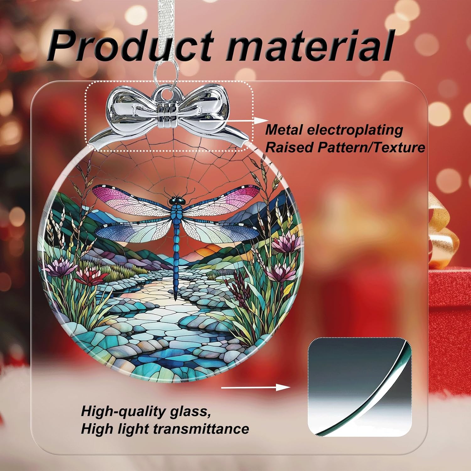 Dragonfly Stained Glass Christmas Ornament - Hanging Ornaments for Christmas Tree Decorations -Holiday Keepsake Present Exchange Idea