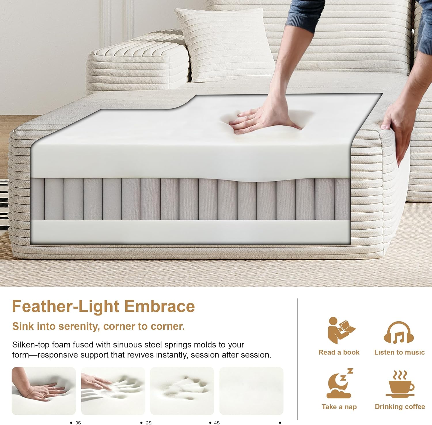 136" Sectional Couches for Living Room Modern Modular Sofa with L-Shape Couchs Upholstered Boneless Couch Deep Seat Sectional Couch with Chaise (White, Left Facing Chaise+3Seaters)