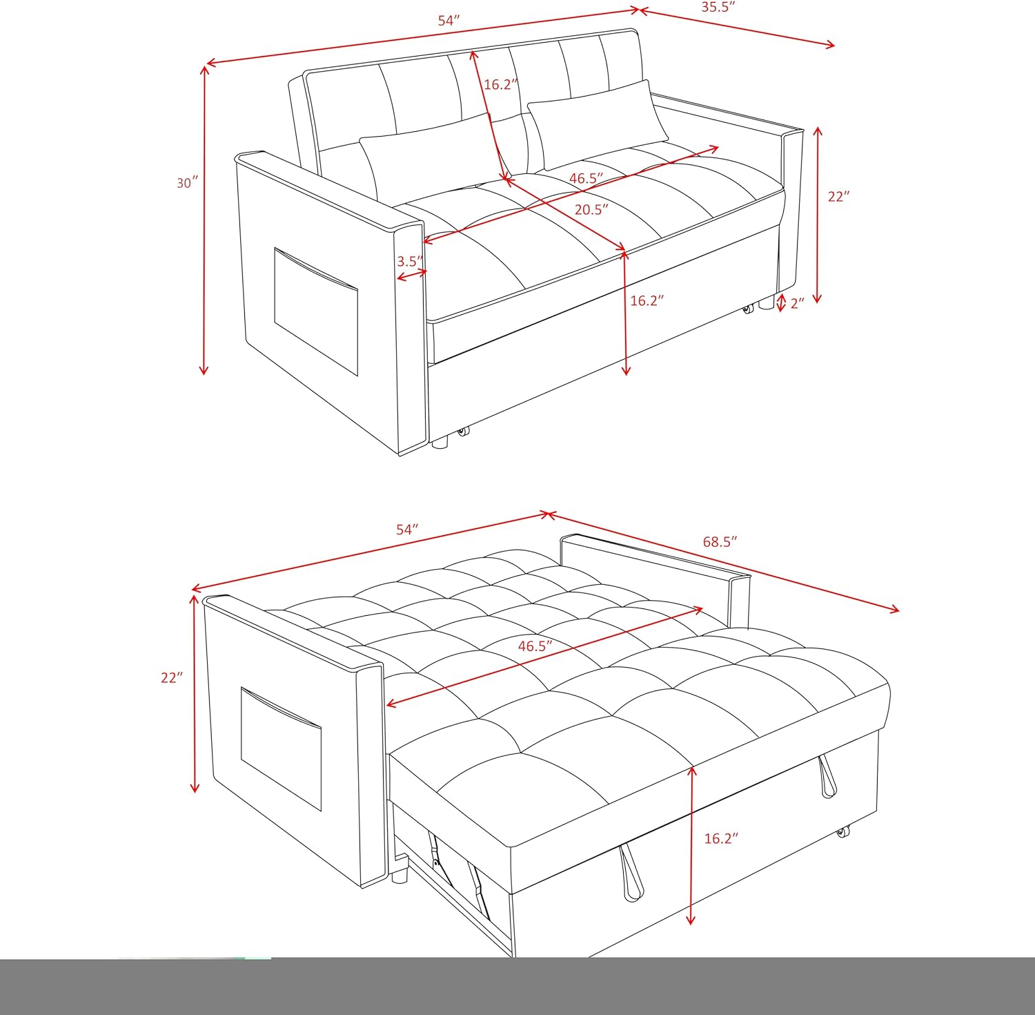 - Versatile Design: This 54β pull-out sleeper sofa easily transforms into a twin-size bed, making it an ideal choice for accommodating overnight guests. Its convertible sleeper sofa design ensures that you can quickly convert it from a stylish couch to a comfortable bed in just seconds
